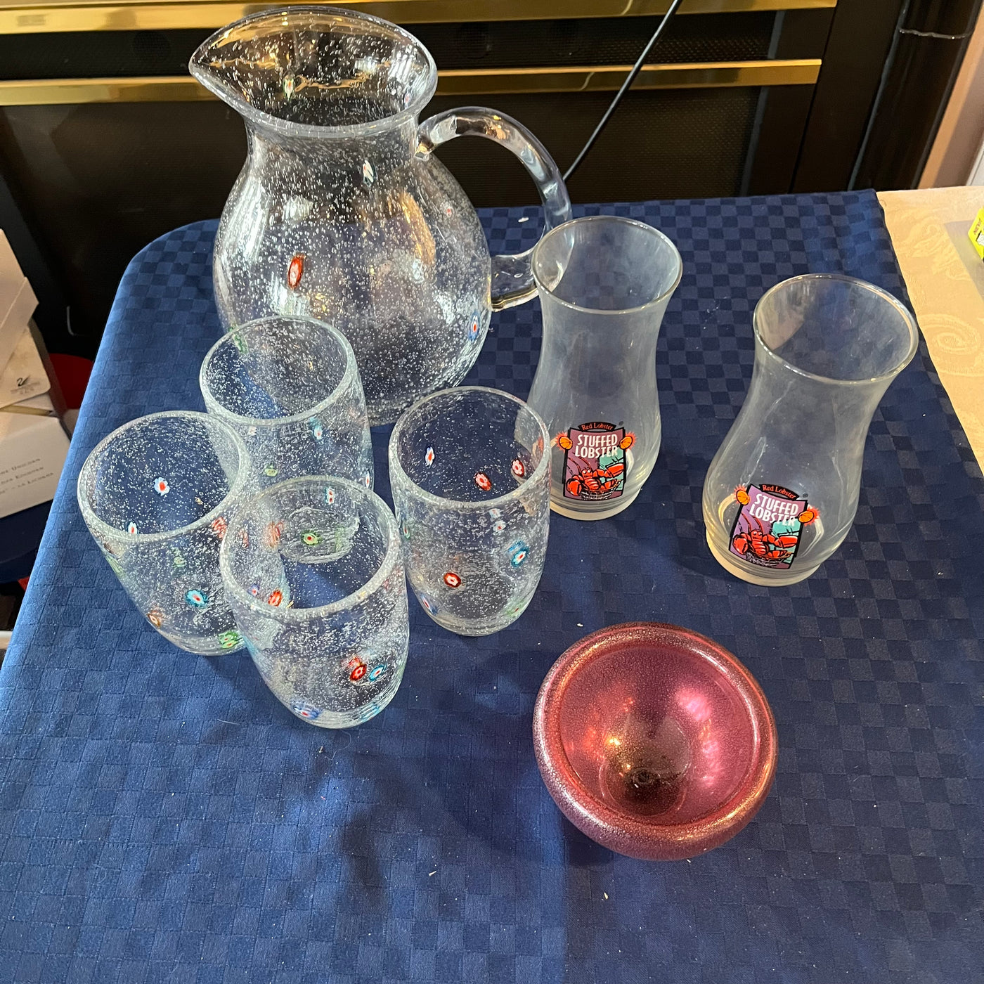 Blown Glass Pitcher with Matching Glasses and More - 0571