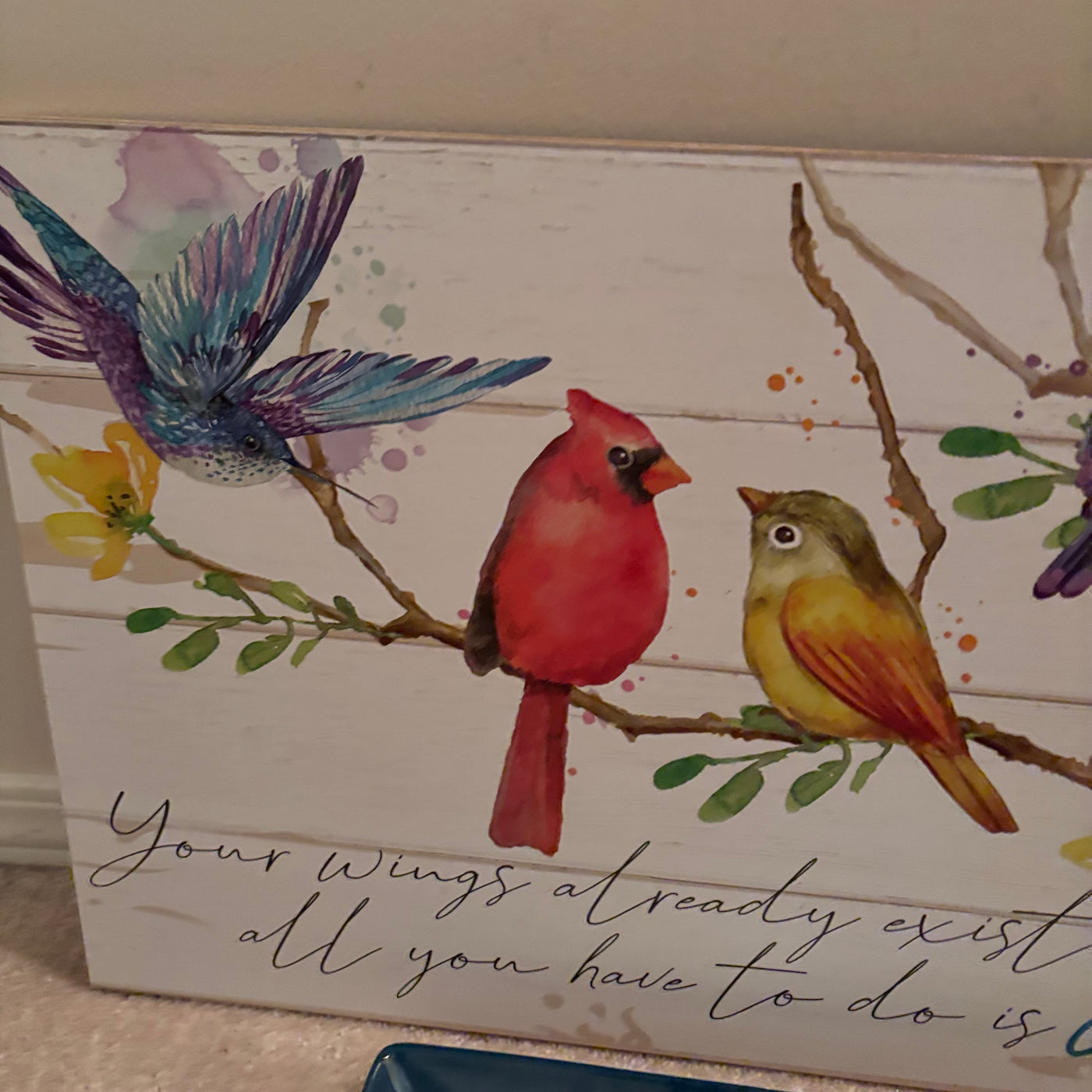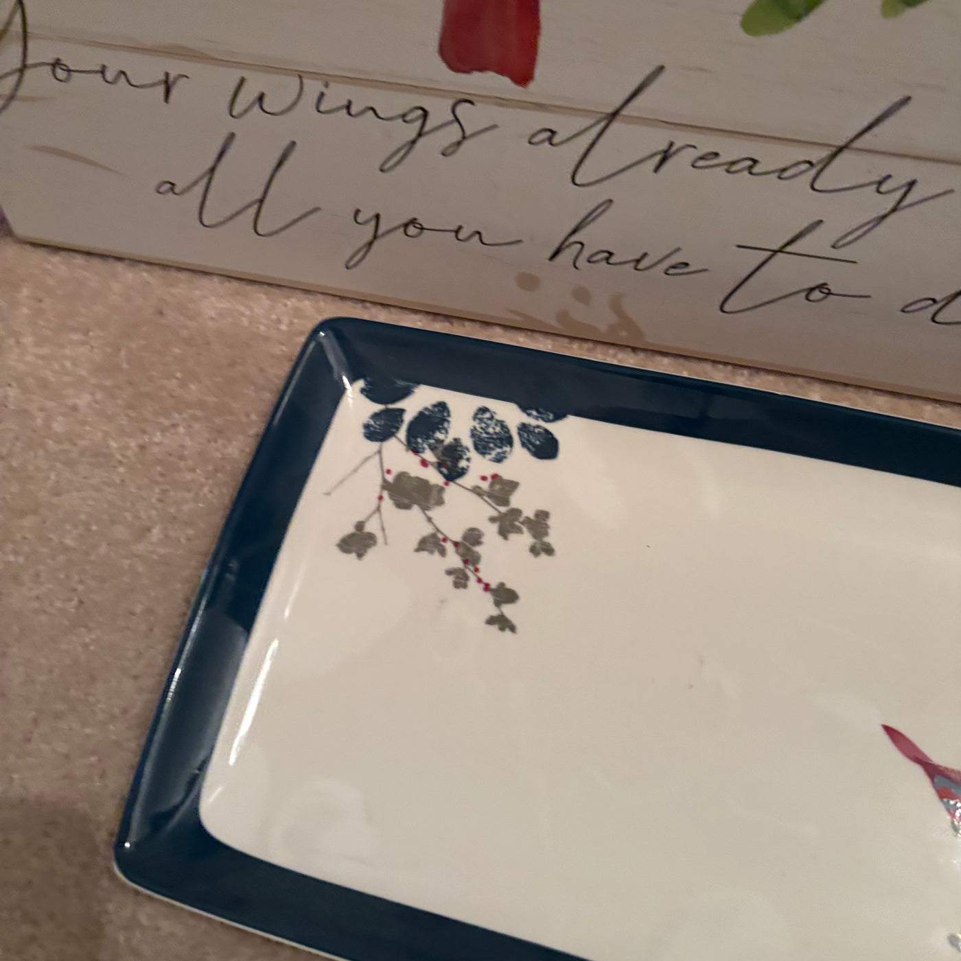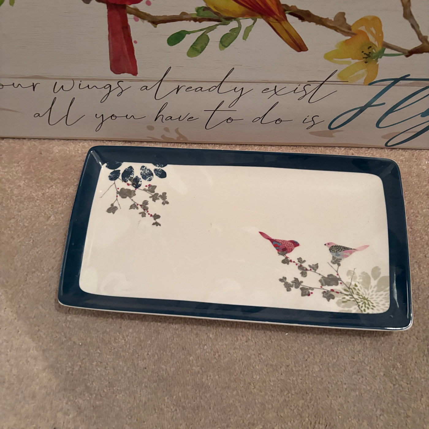 24”x14” Bird Wall Art and Bird Ceramic Tray - B221