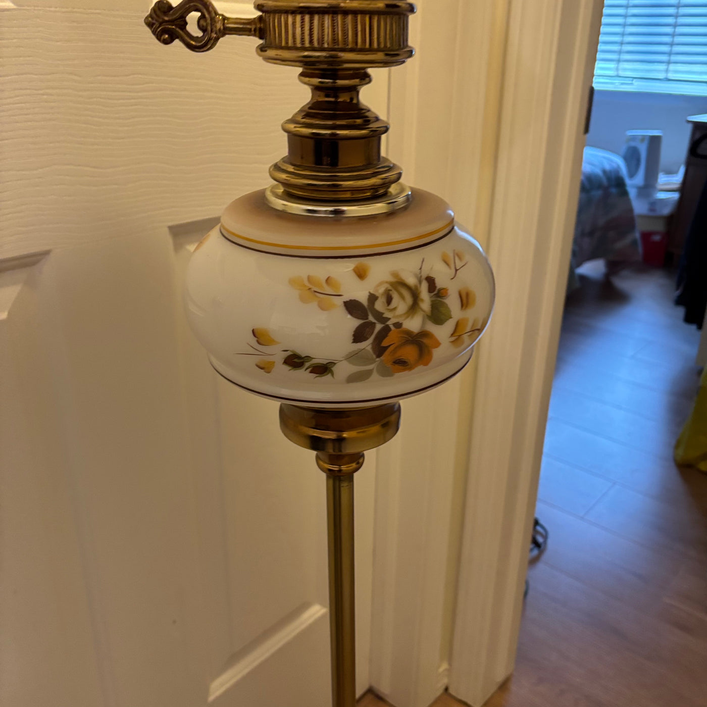 Single 4 Foot Tall Floor Lamp with Brass Base and White Glass Orb - B252