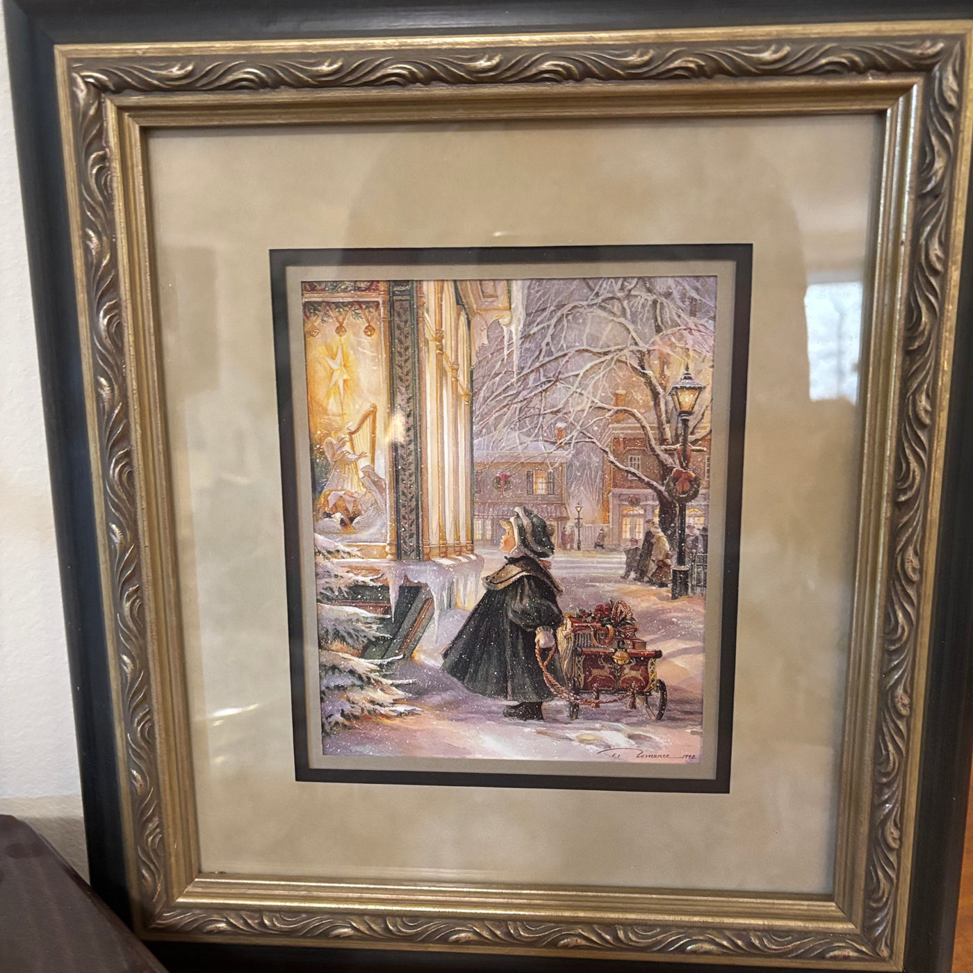 - Vintage Regular Wall Clock and Framed Trisha Romance Print - B266