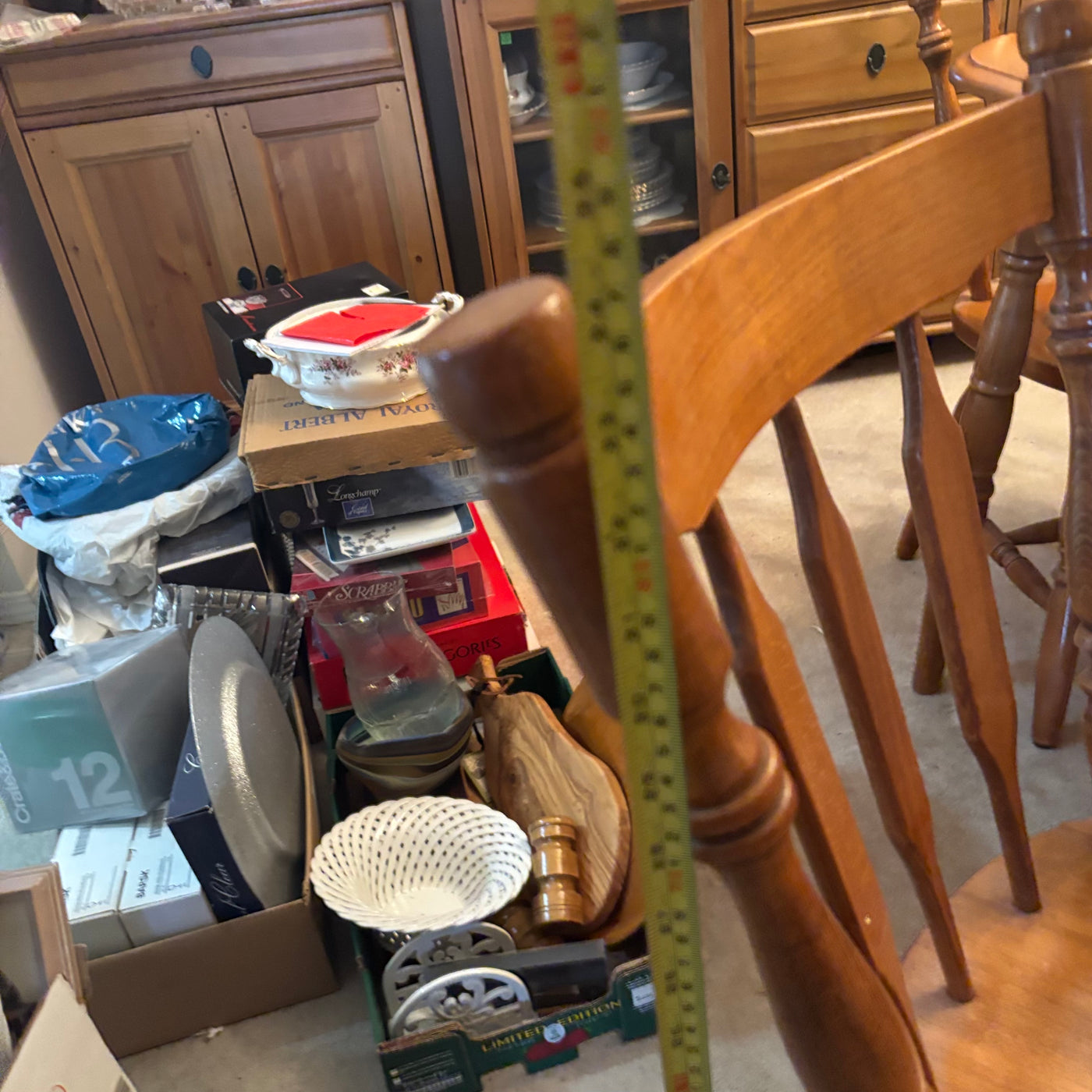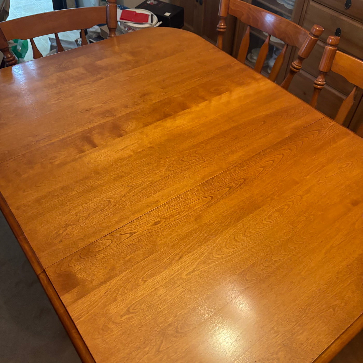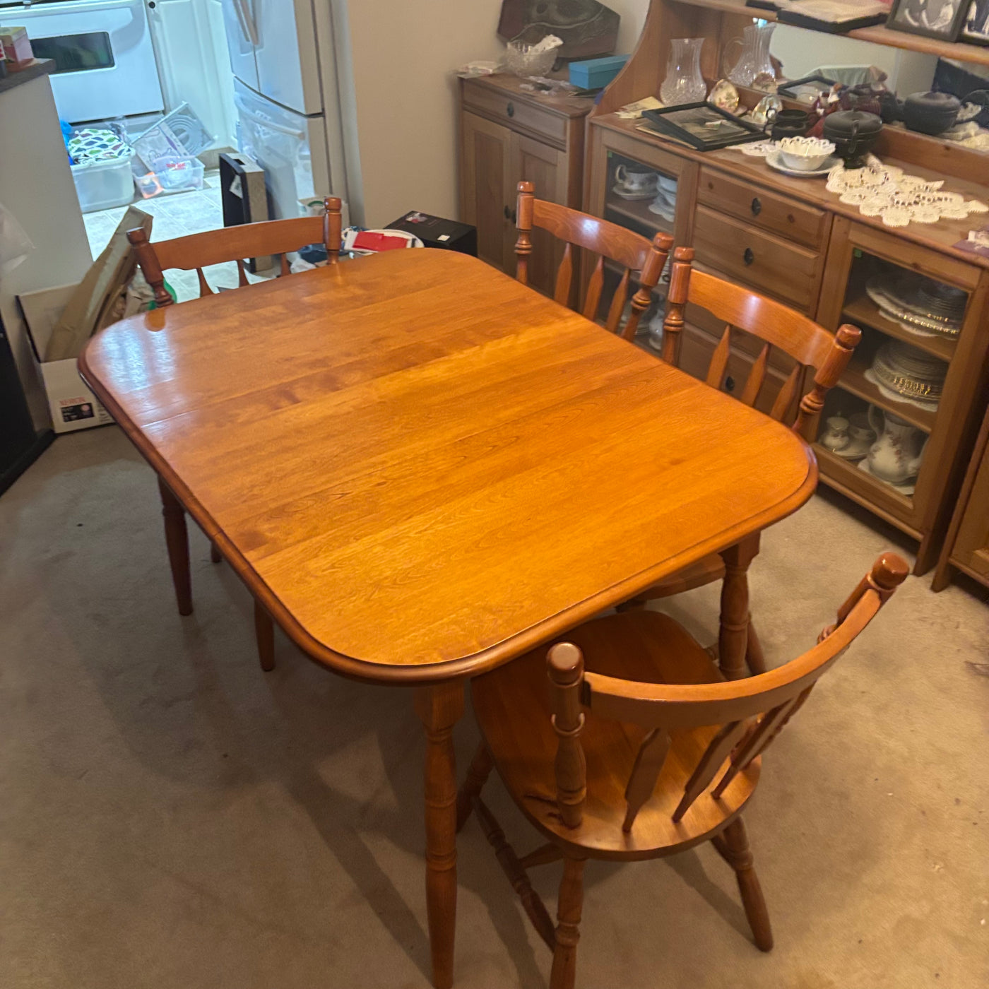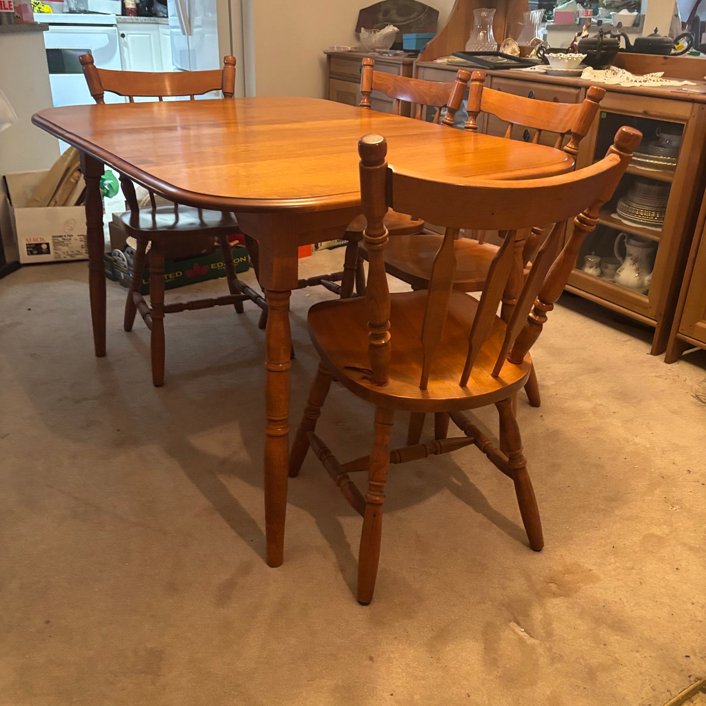 - Solid Wood Kitchen Table with 4 Chairs and 1 Leaf (pictured with leaf) - B210