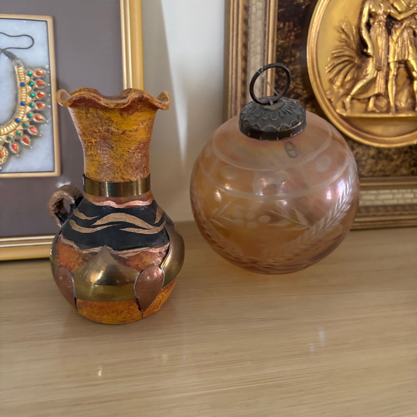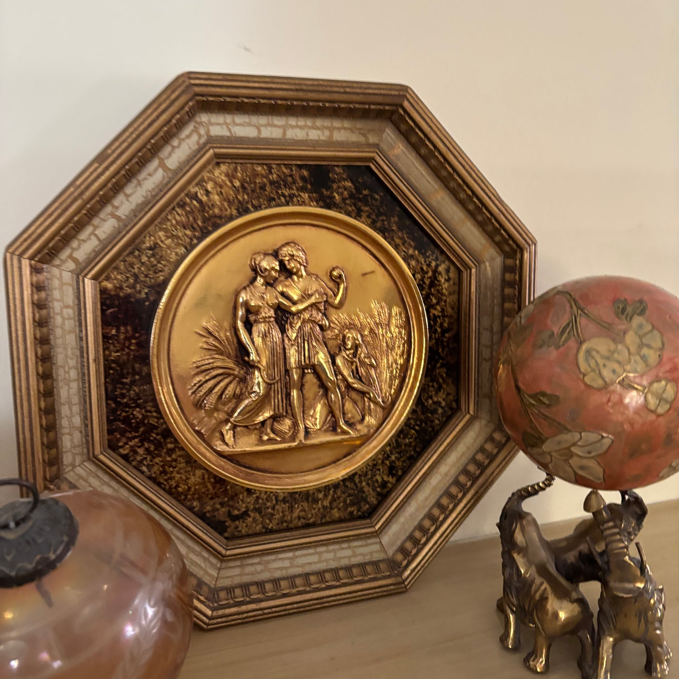 - Home Decor Grouping (Brass Elephants Holding Floral Ball and More) - R560