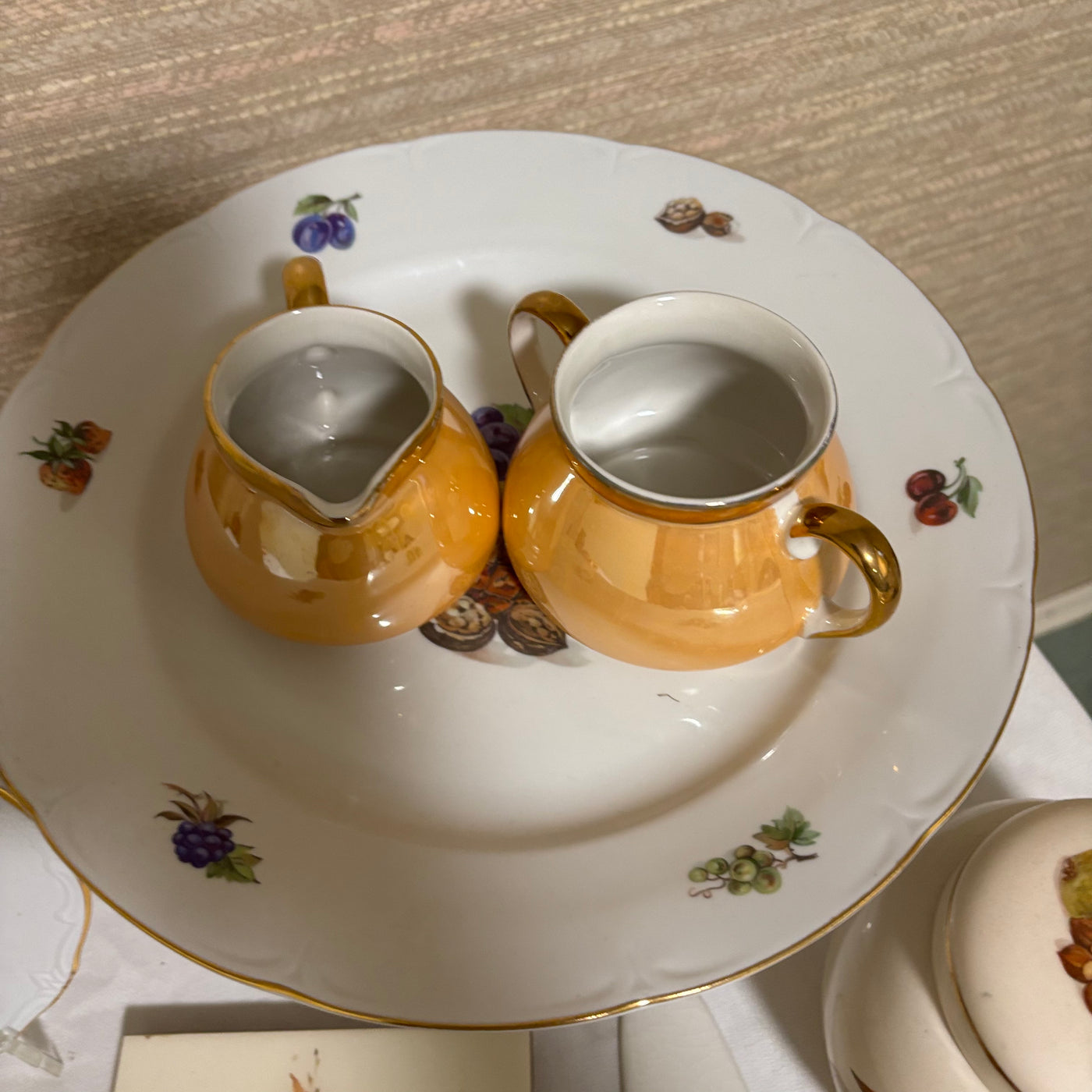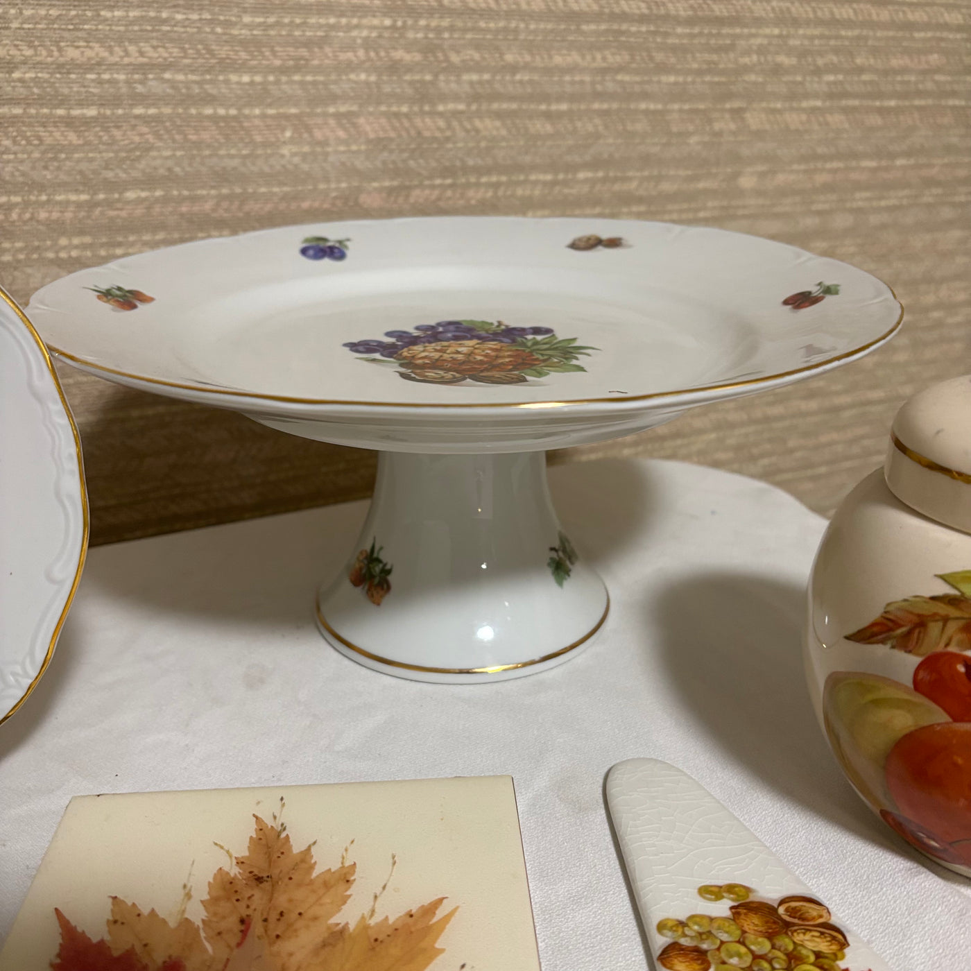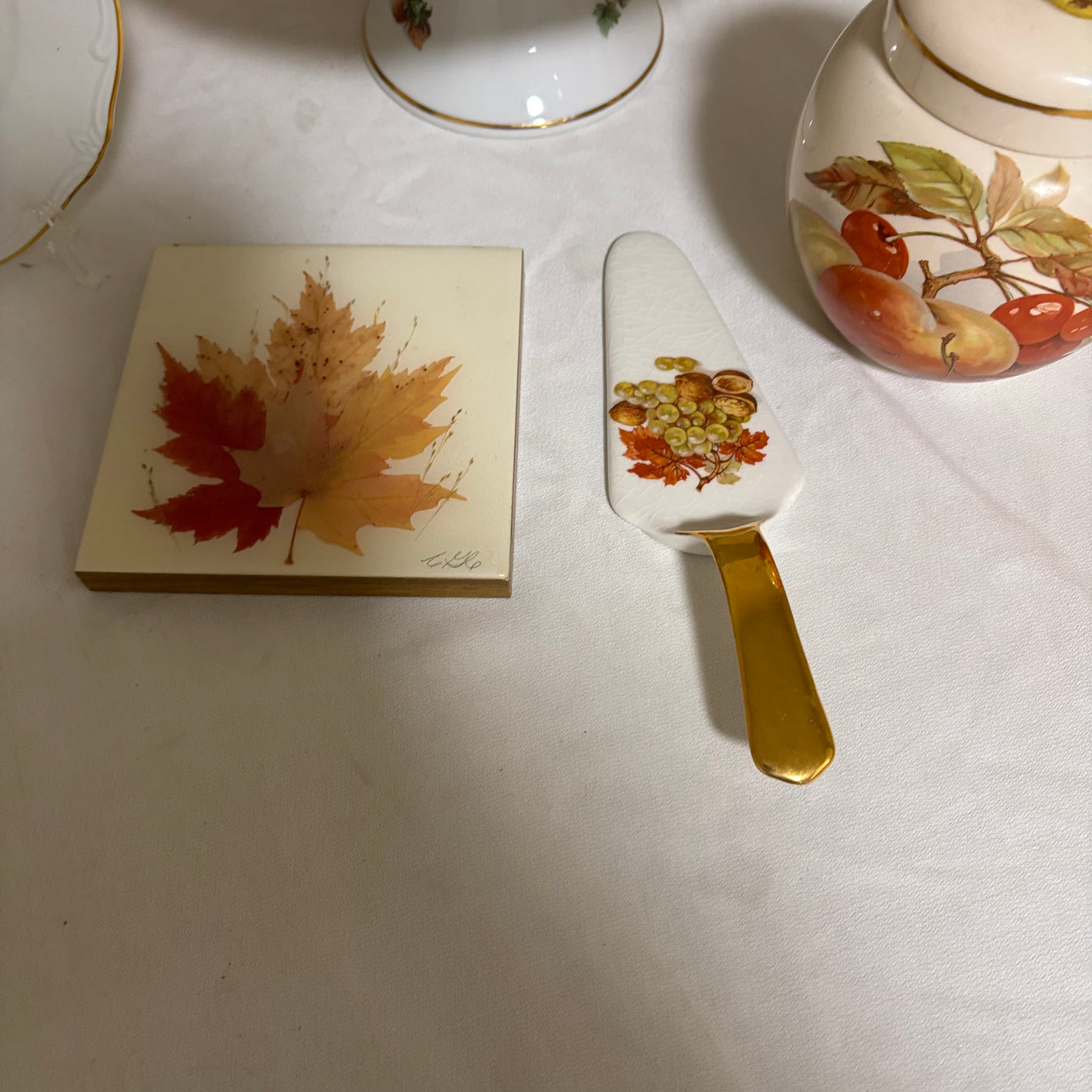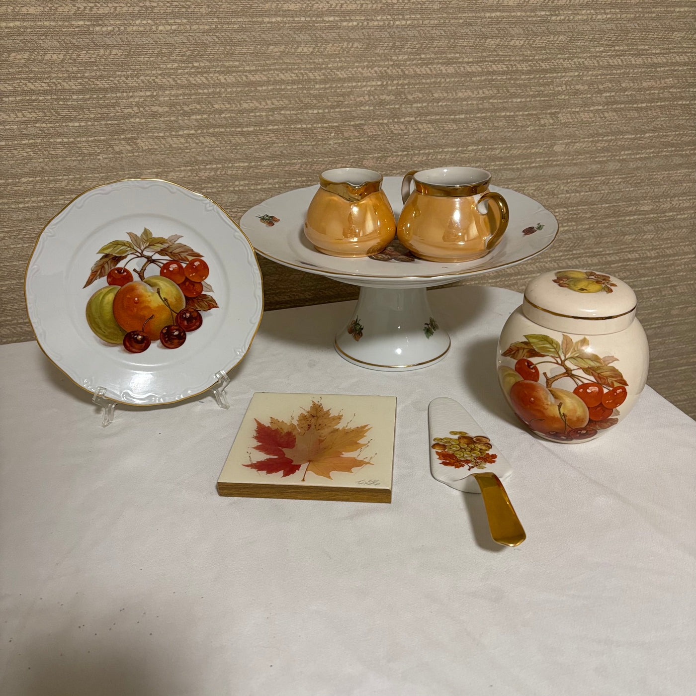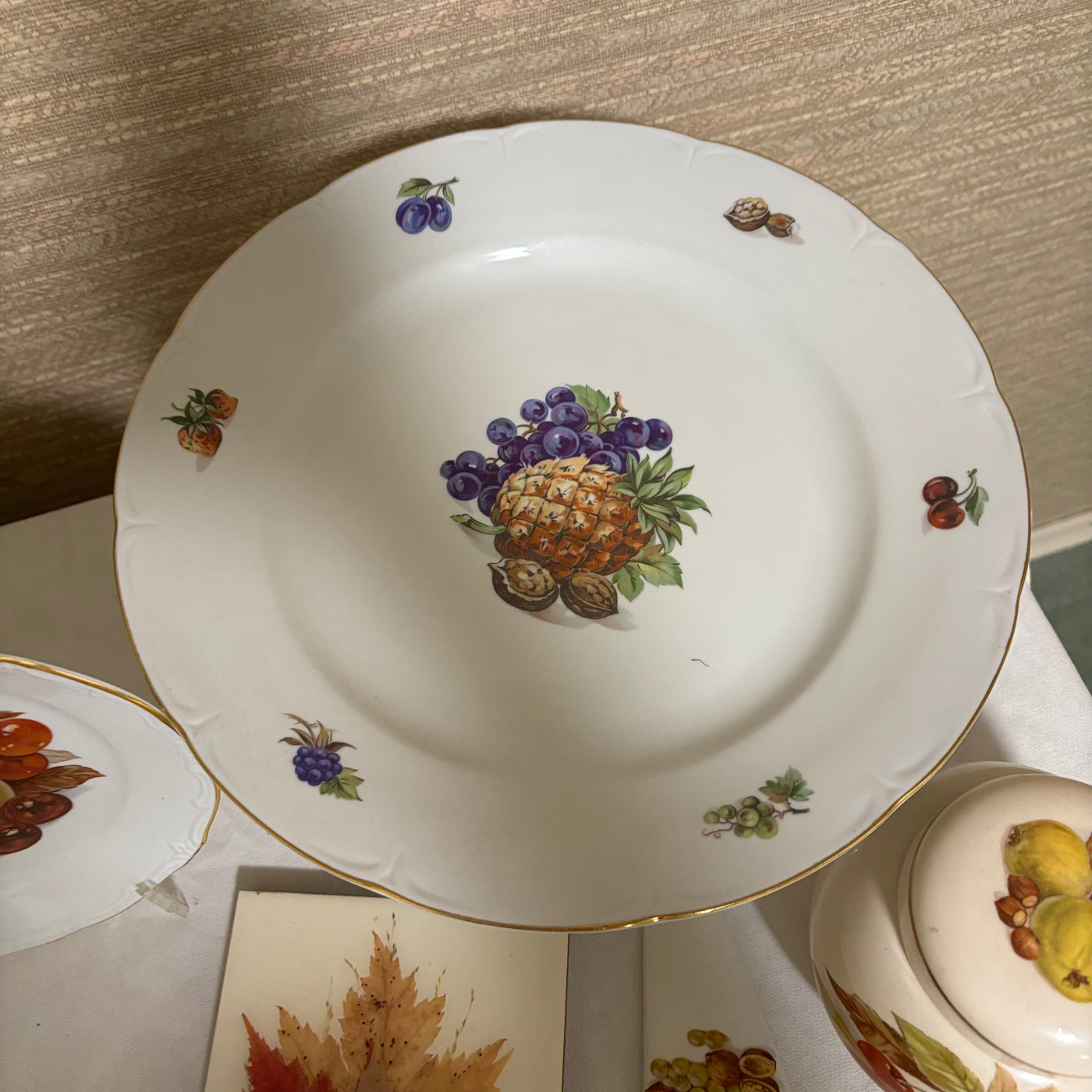 Vintage China Grouping (Wooden Leaf Wall Plaque and China) - R526