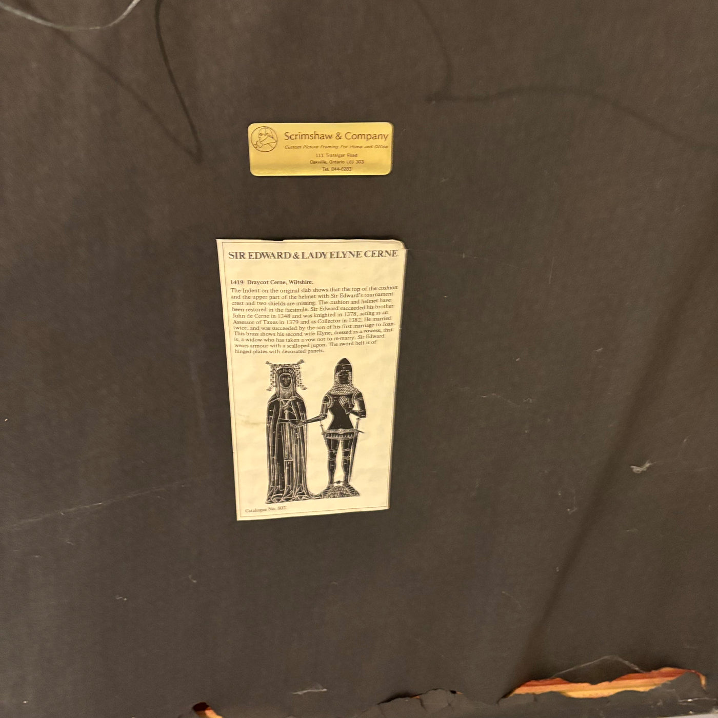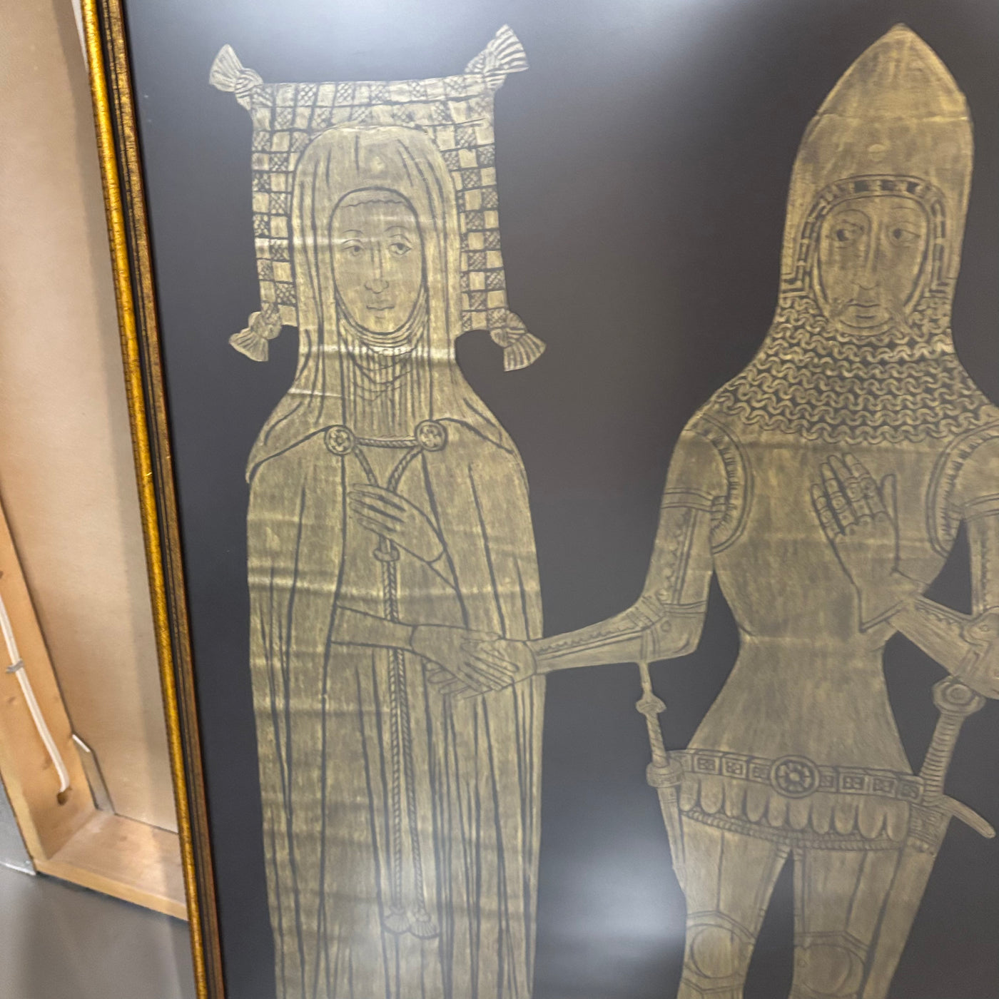 42" x 36" Framed Sir Edward & Lady Elyne Cerne Brass Rubbing - M331