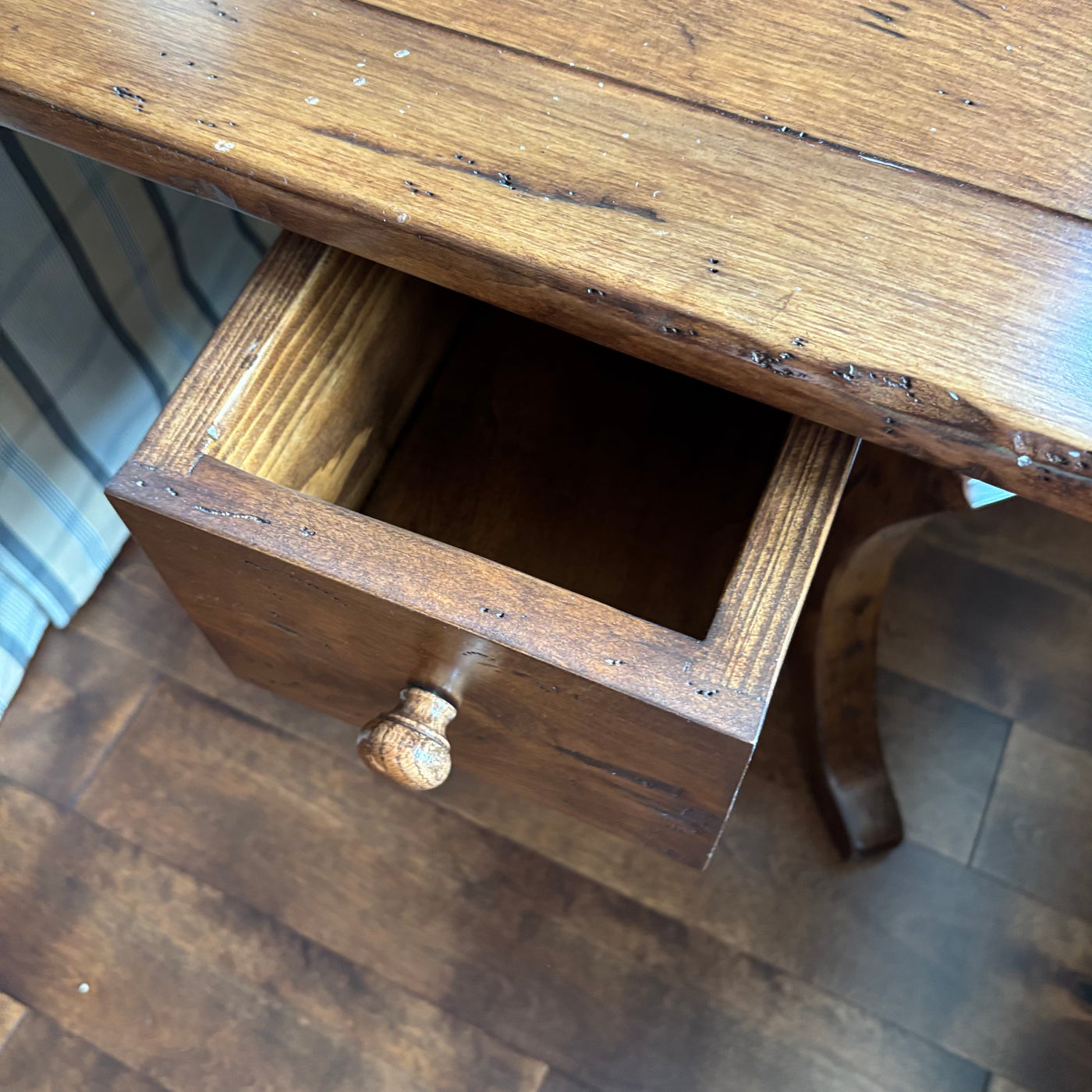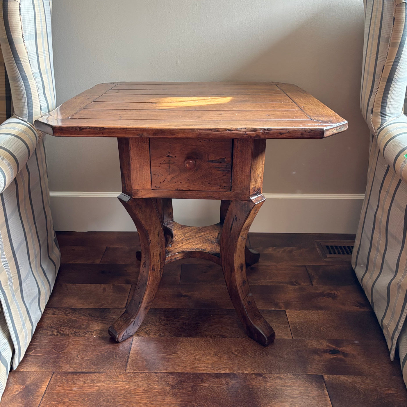 Solid Wood Accent Table with Plank Design and Small Drawer - M363