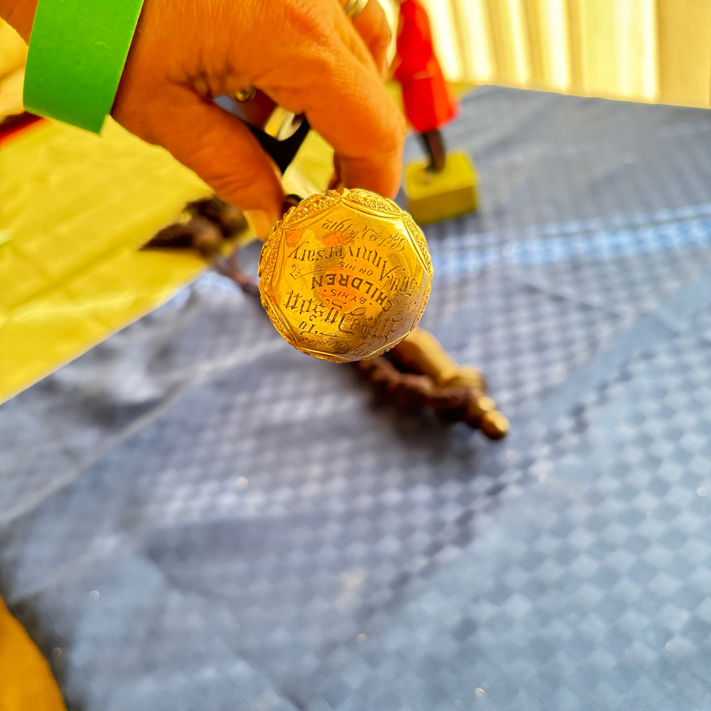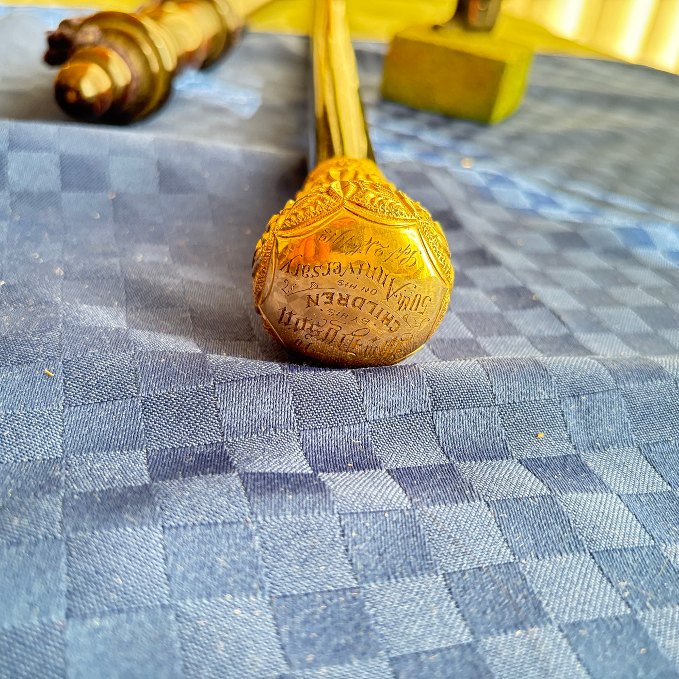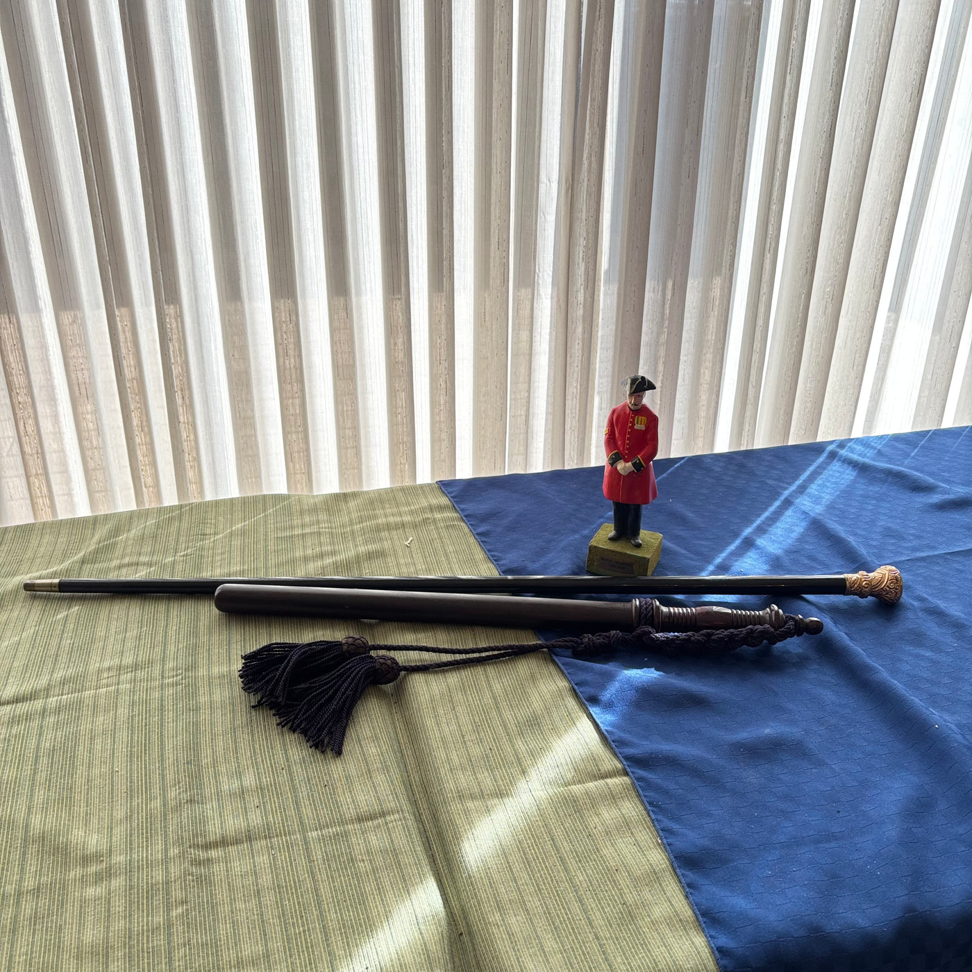 ENGRAVED WALKING STICK, WOODEN BATTON AND WODEN FIGURINE - P298