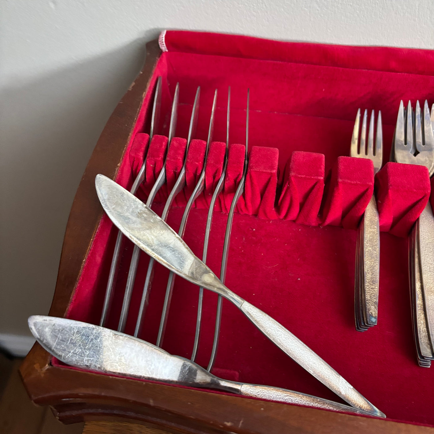 - VINTAGE SILVER PLATED COMMUNITY FLATWARE WITH FLATWARE CASE AND MORE - P346