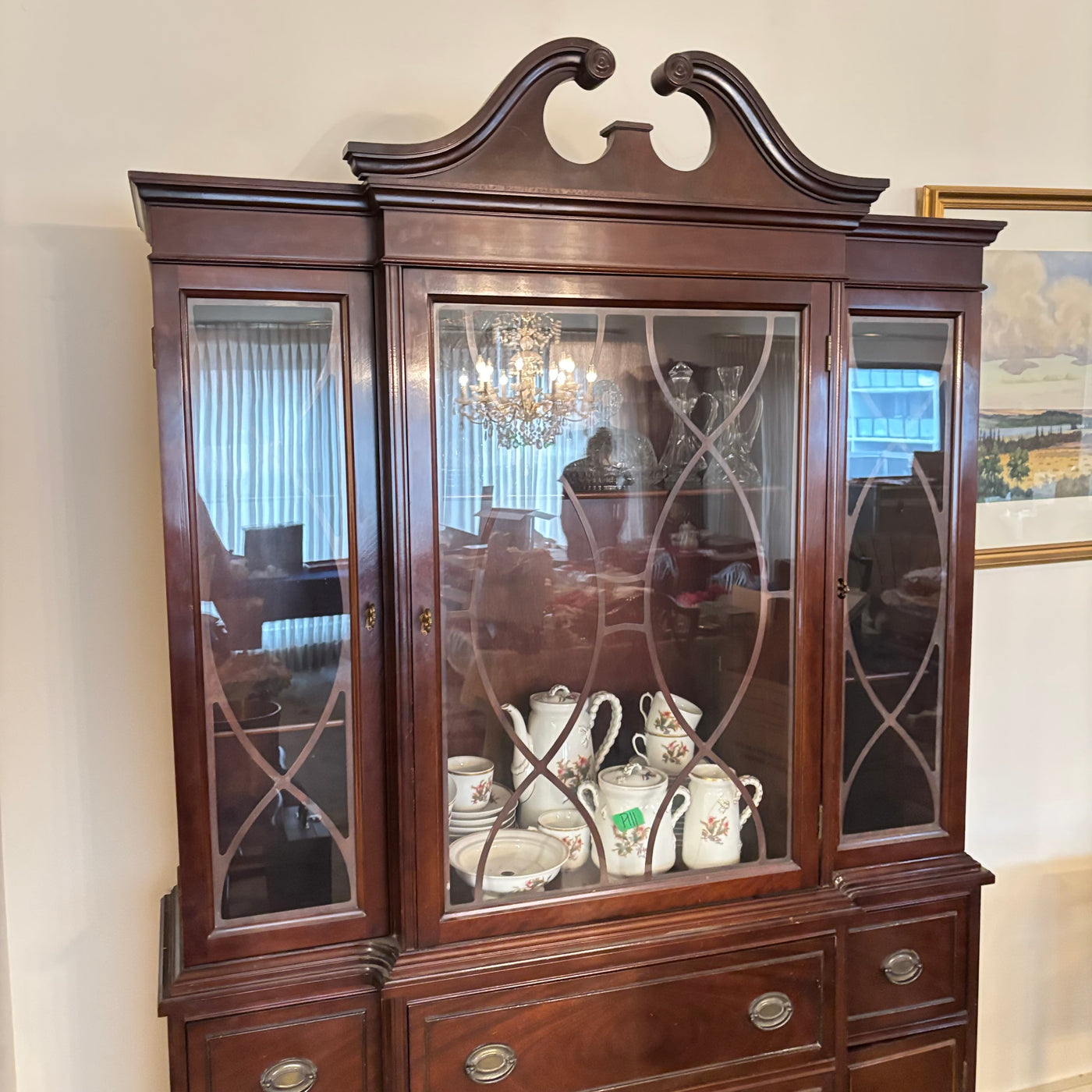 SOLID WOOD VINTAGE CHINA CABINET WITH HIDDEN SECRETARY DESK (CONTENTS NOT INCLUDED) - P136