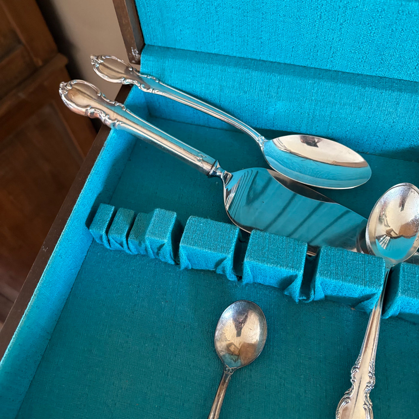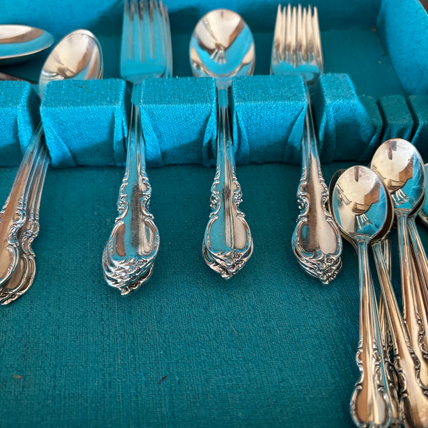 VINTAGE SILVER PLATED ROGERS BROS FLATWARE WITH FLATWARE CASE - P347