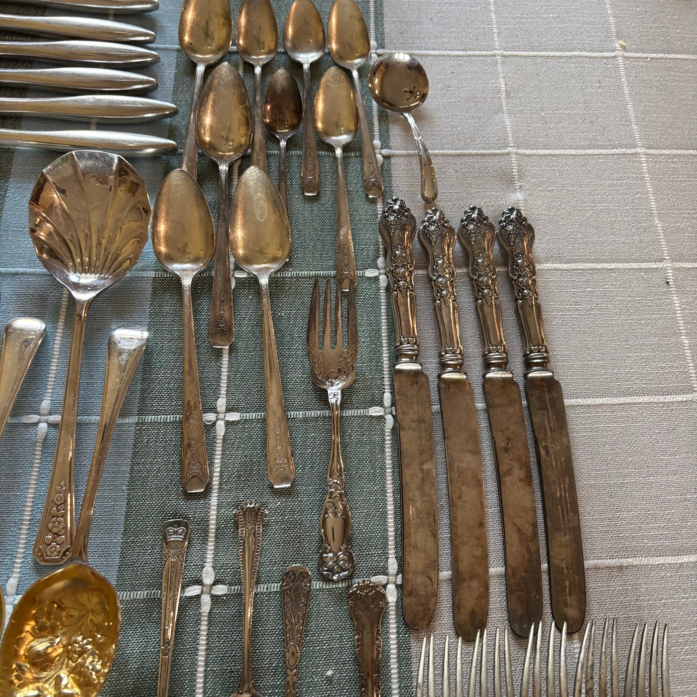 VINTAGE SILVER PLATED FLATWARE AND MORE GROUPING - P348