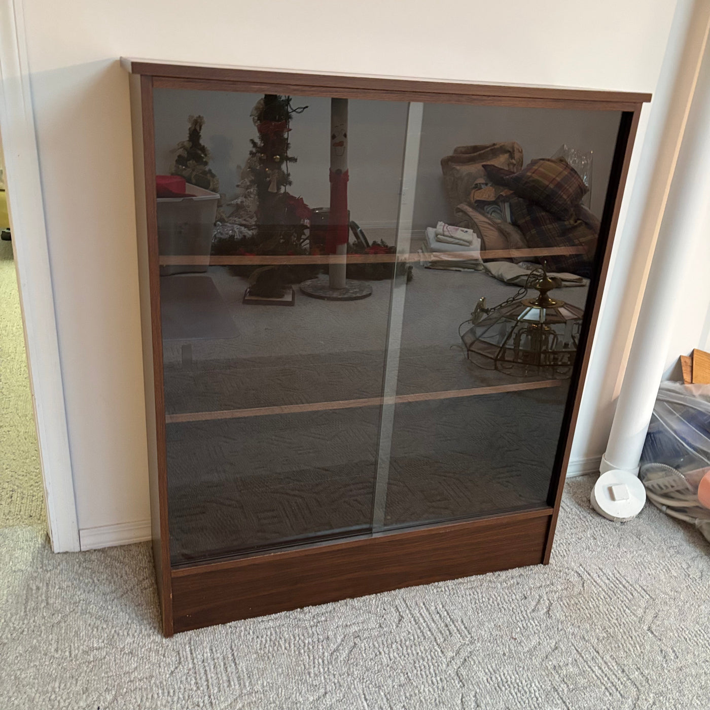 Vintage Cabinet/Bookcase with Glass Sliding Doors - S526