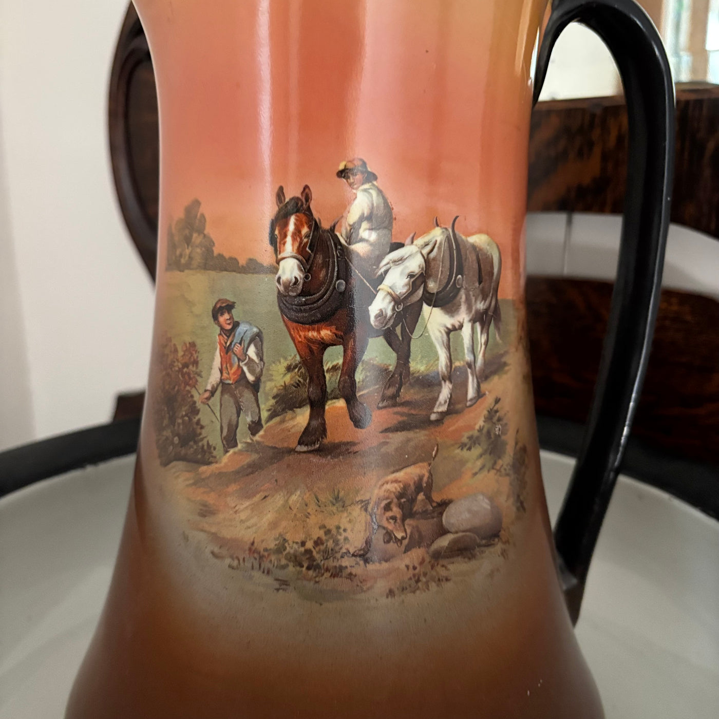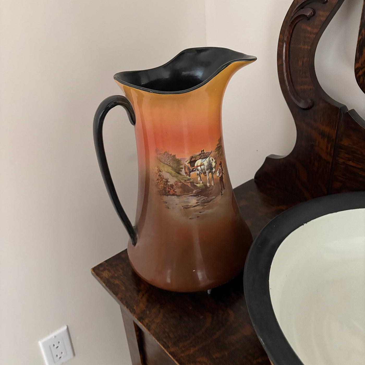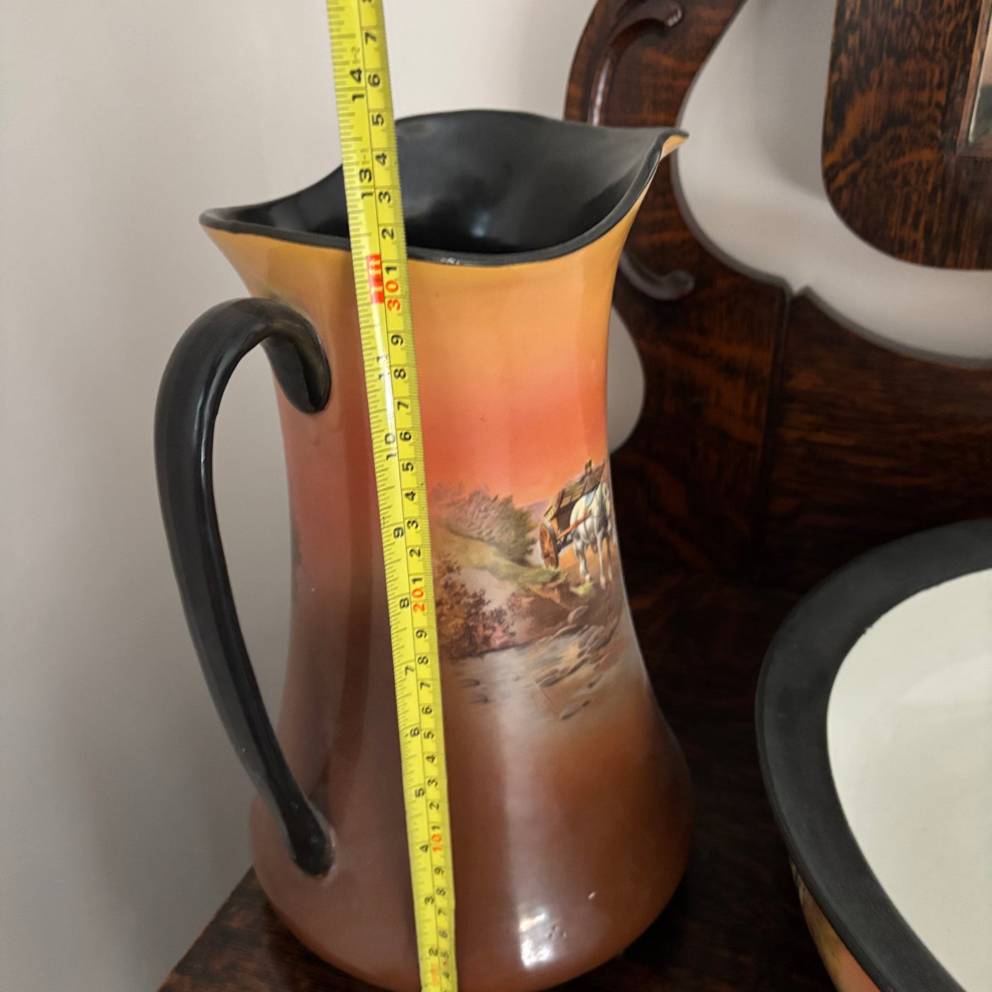Vintage Porcelain 12” Tall Pitcher and Wash Basin Set - C455