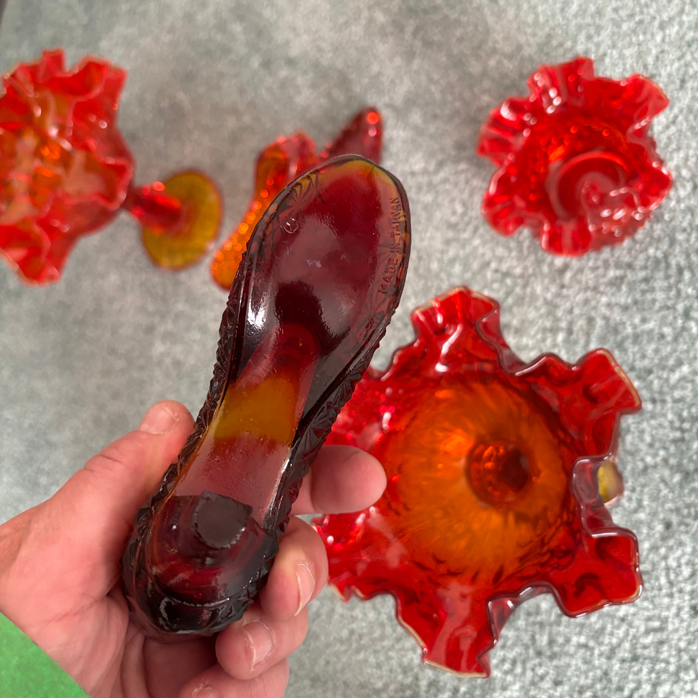 Red Art-glass Candy Blows and Shoes - C430