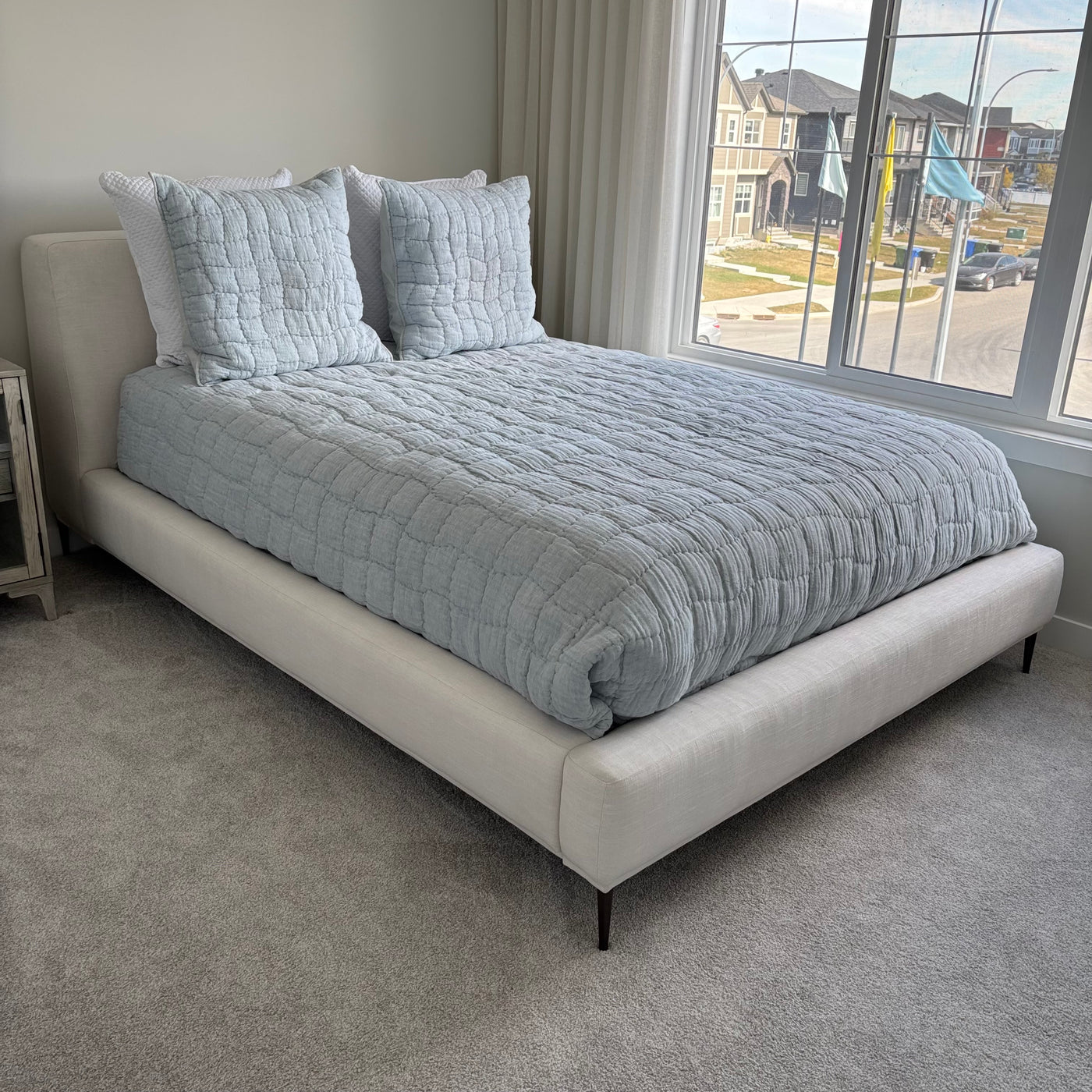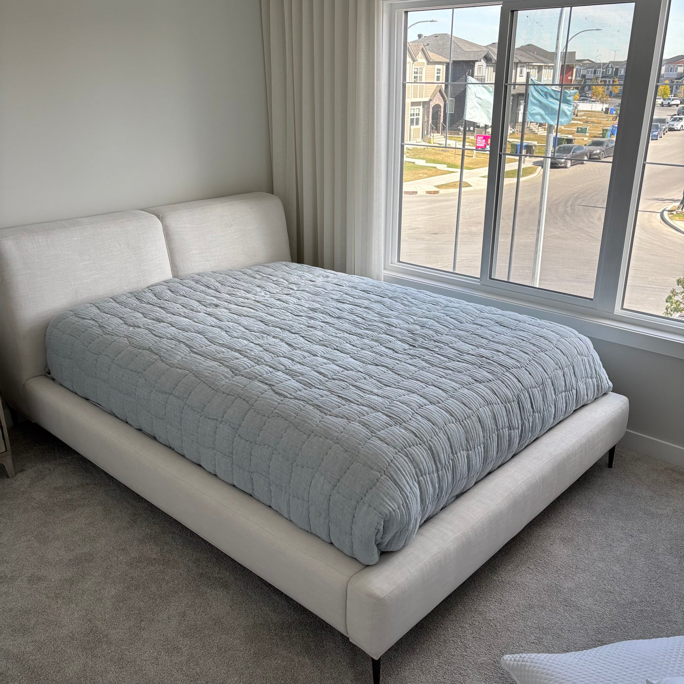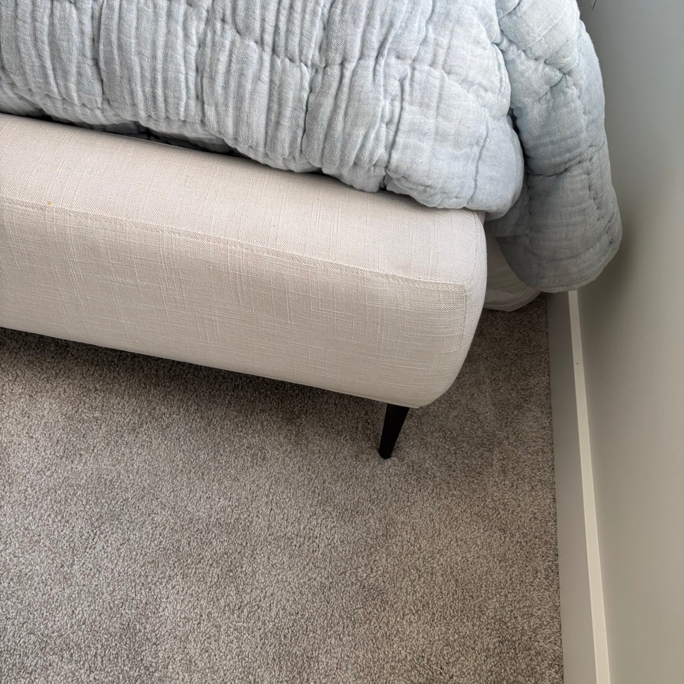 Creamy White Upholstered Queen Size Bed Frame (a few marks on fabric) - G360