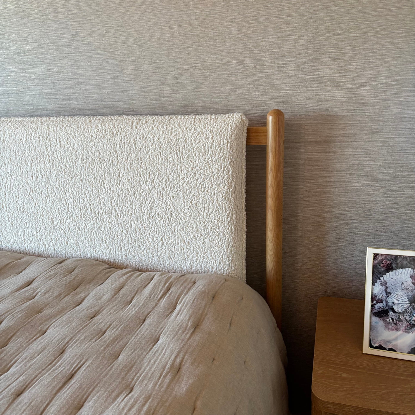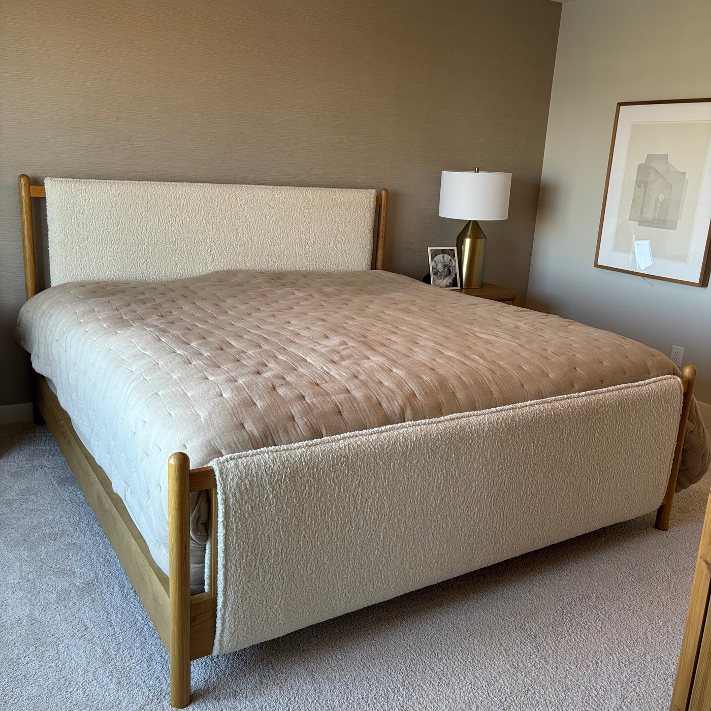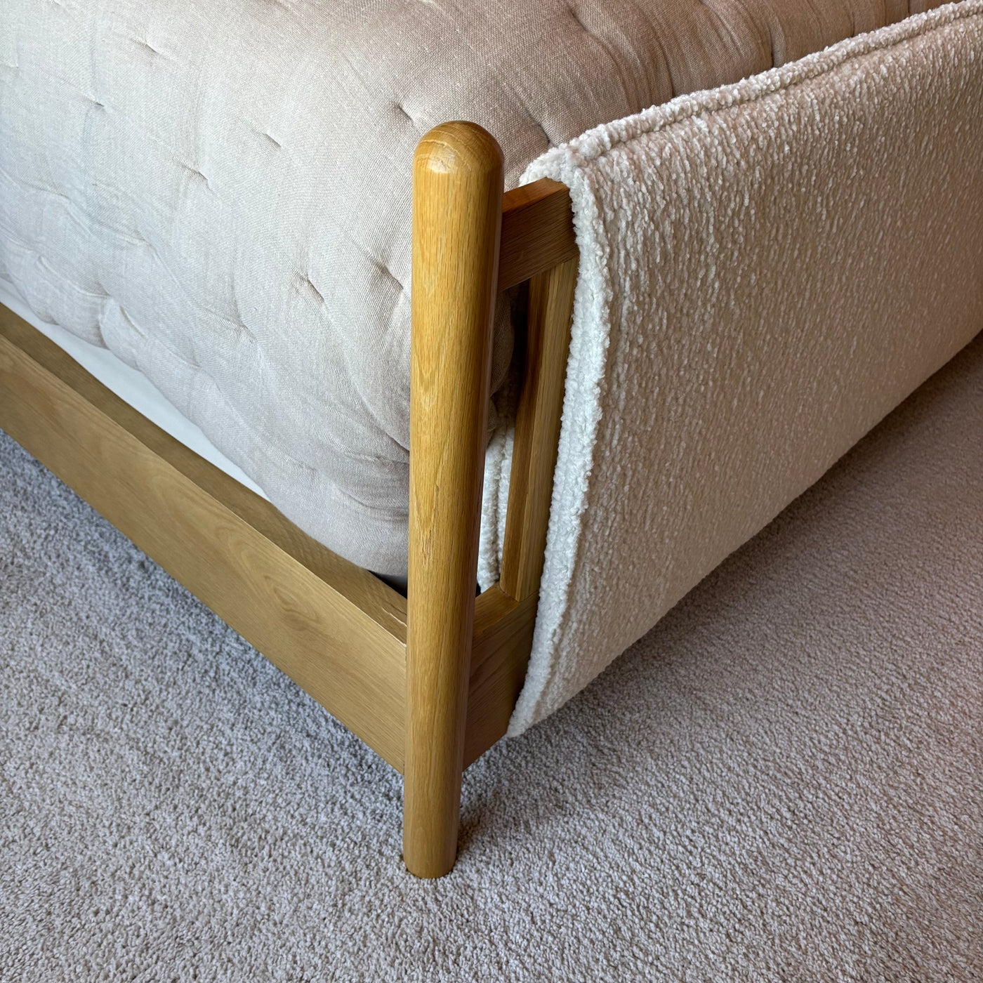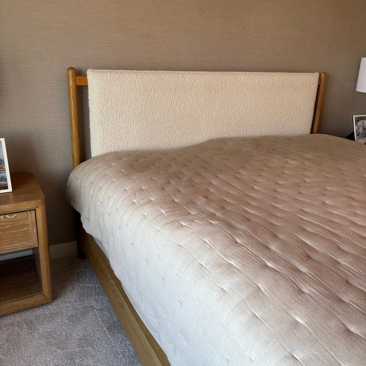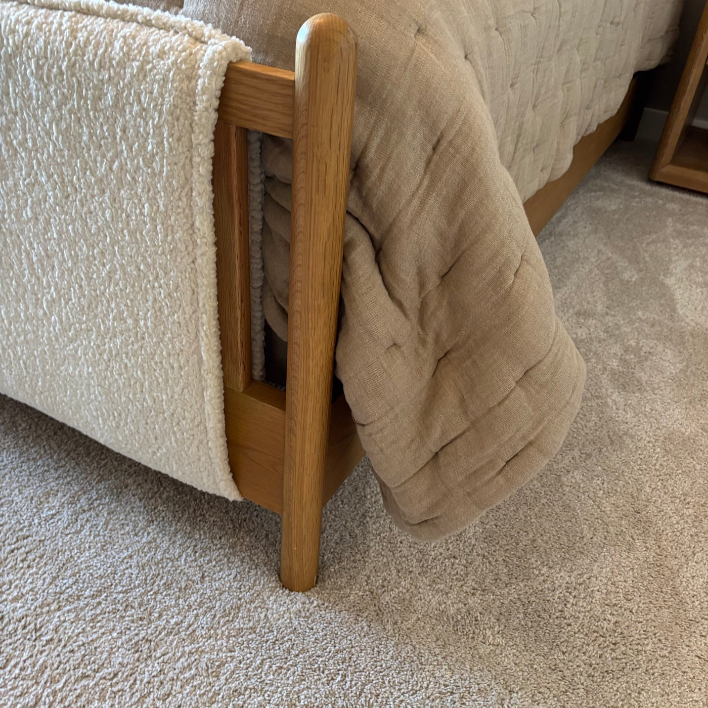 King Size Four Hands Bowen Bed Frame in Sheepskin Natural and Finished Oak - G410