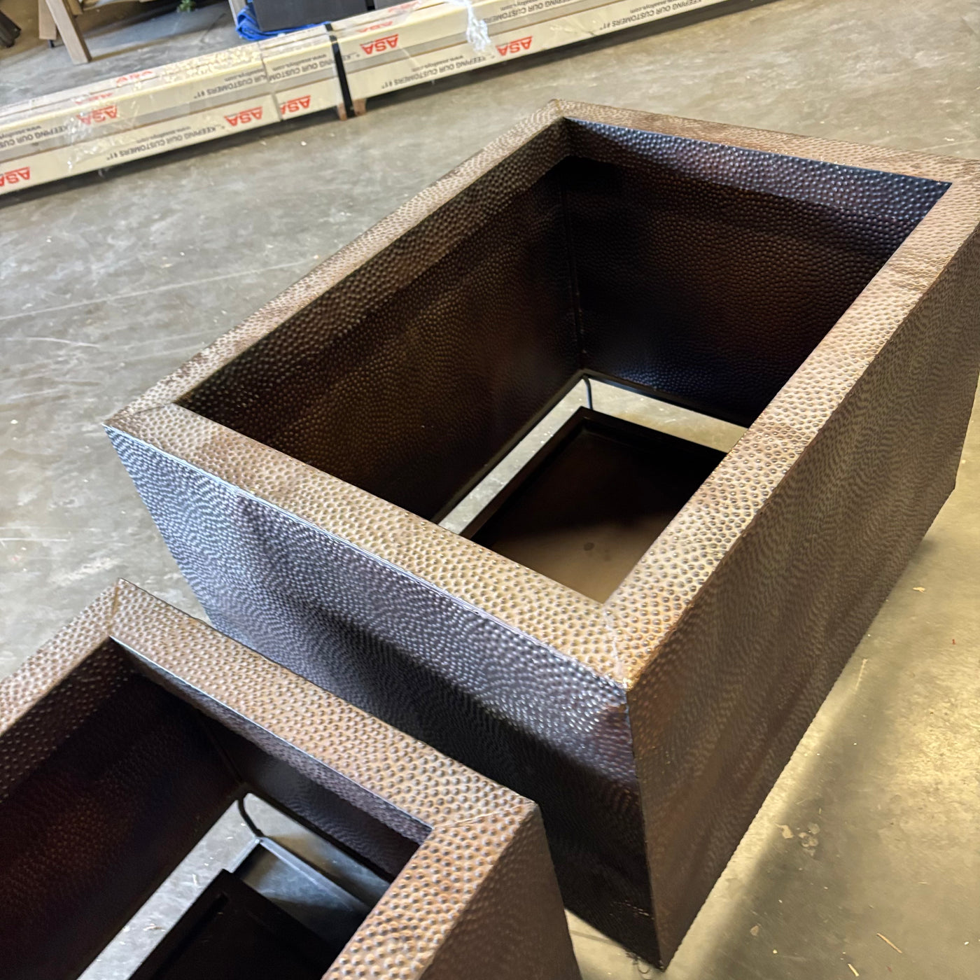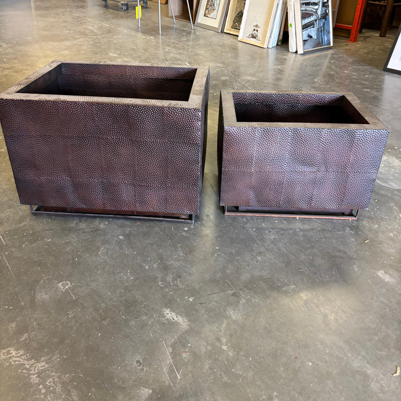 2 LIGHTWEIGHT COPPER OUTDOOR PLANTERS - G144