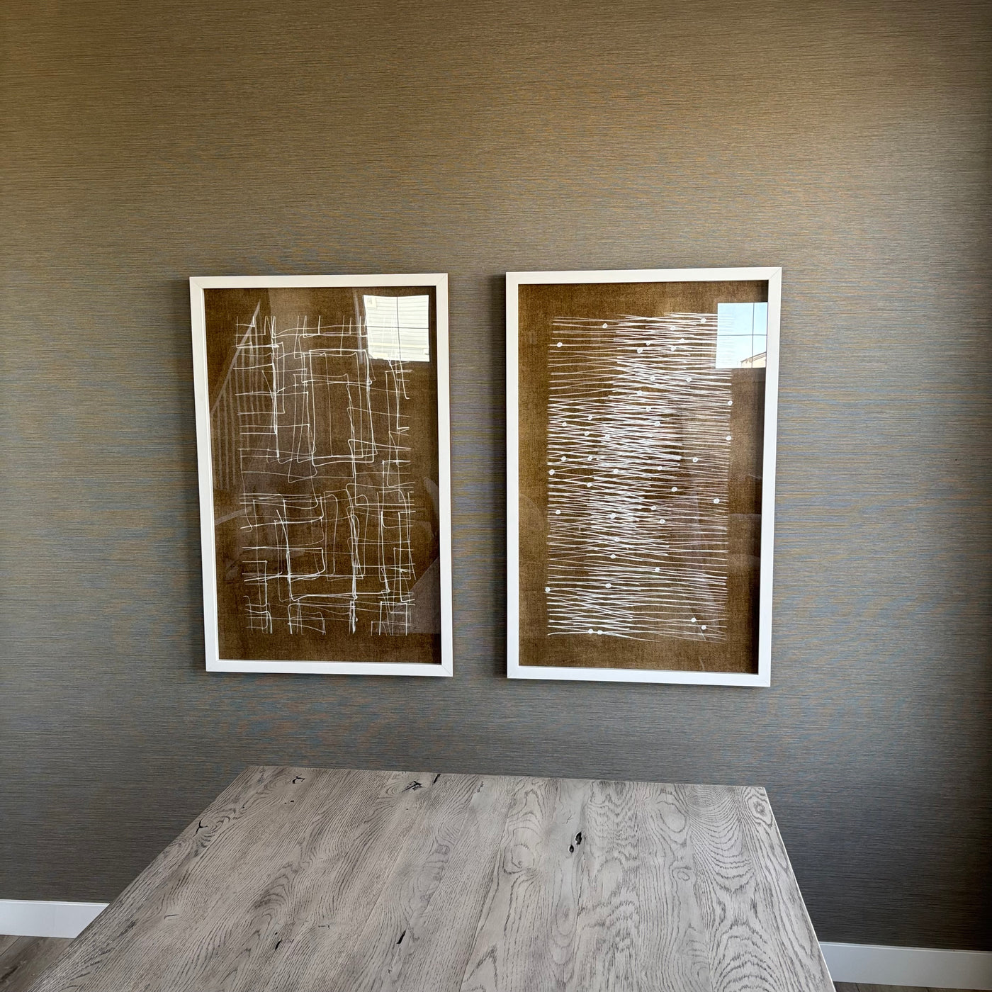 2 Piece 25” x 40” Framed Burnt Umber Impressions Artwork - G305