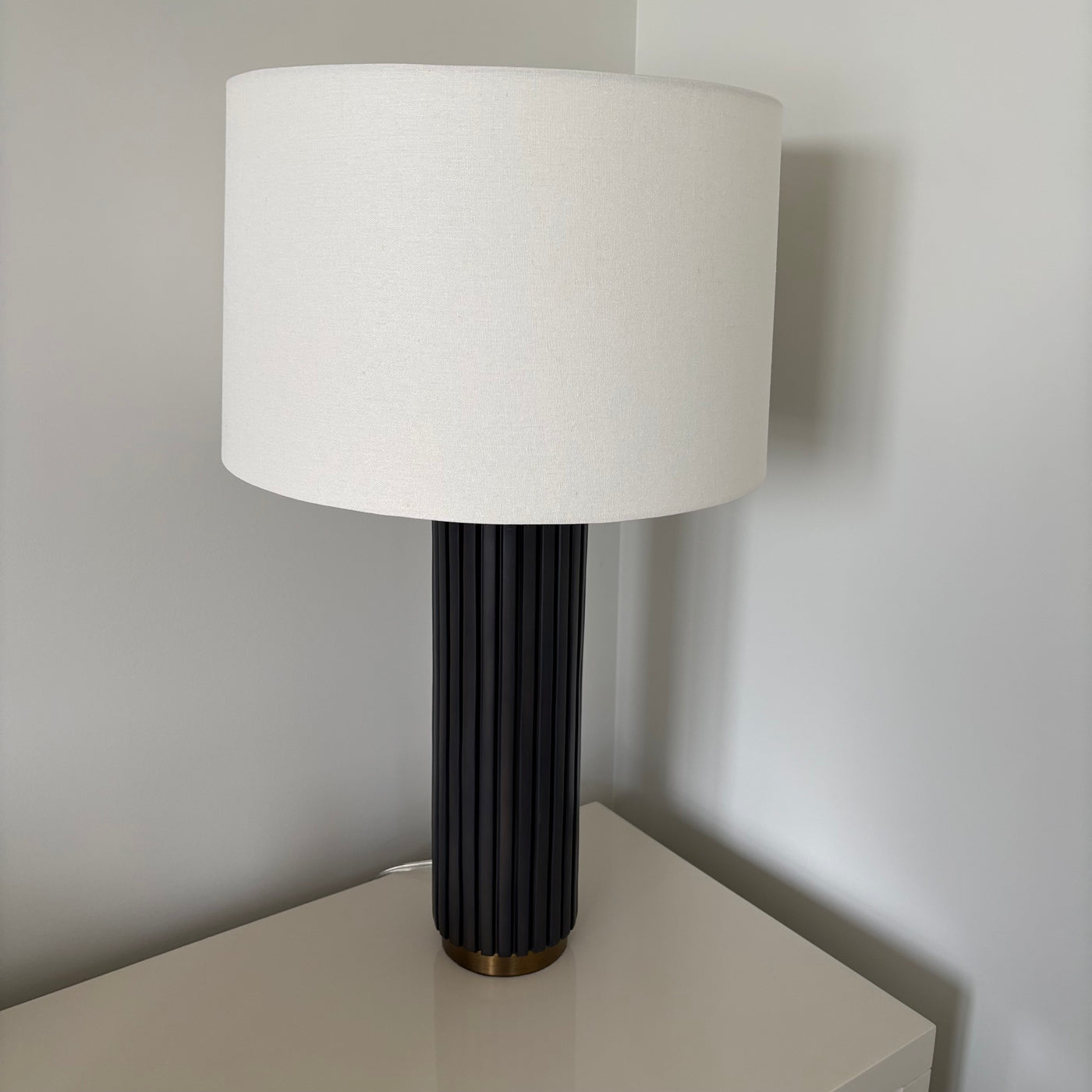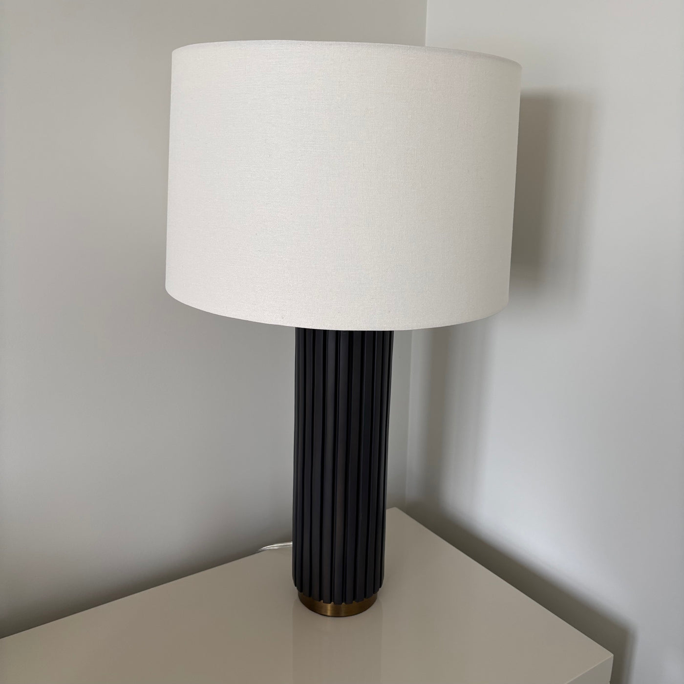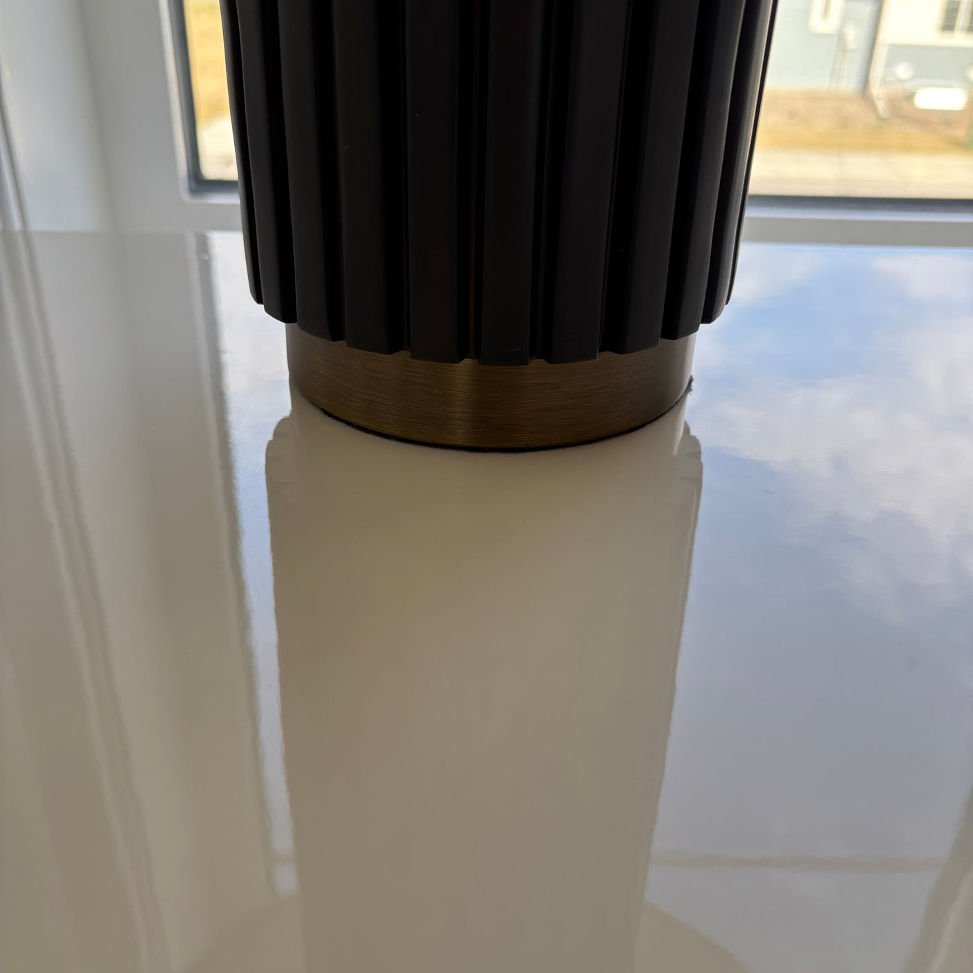 Set of 2 27" Tall Modern Table Lamps with Black Stoneware and Brass Bases - G328