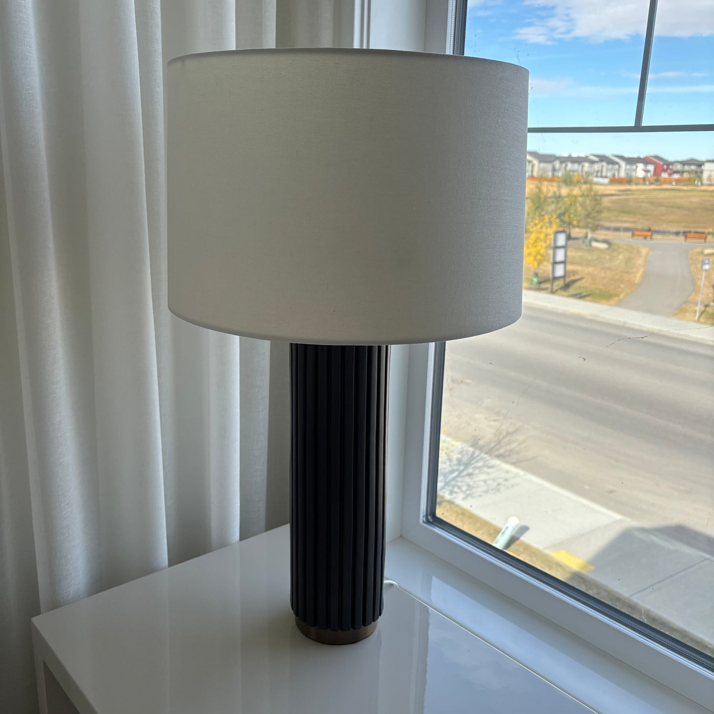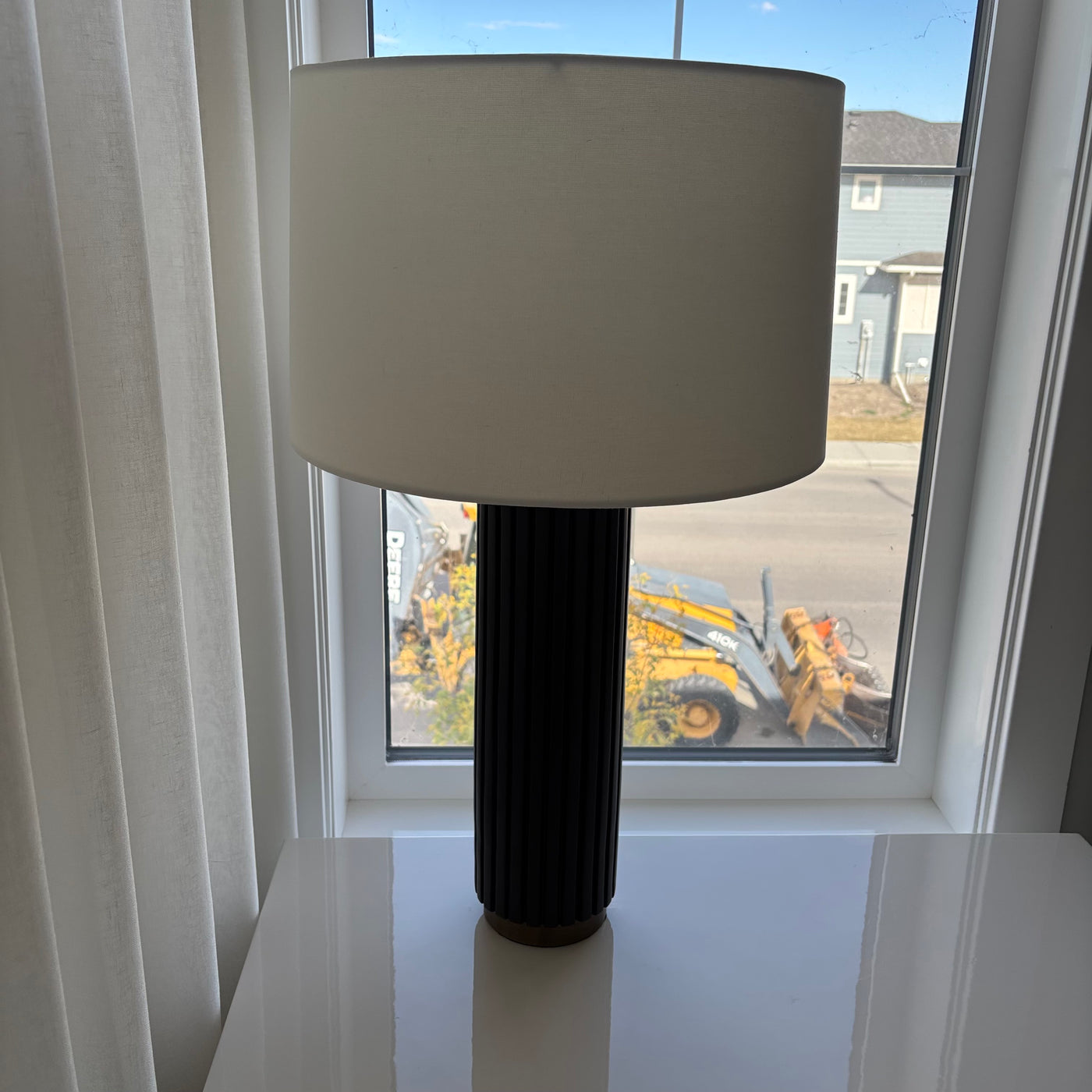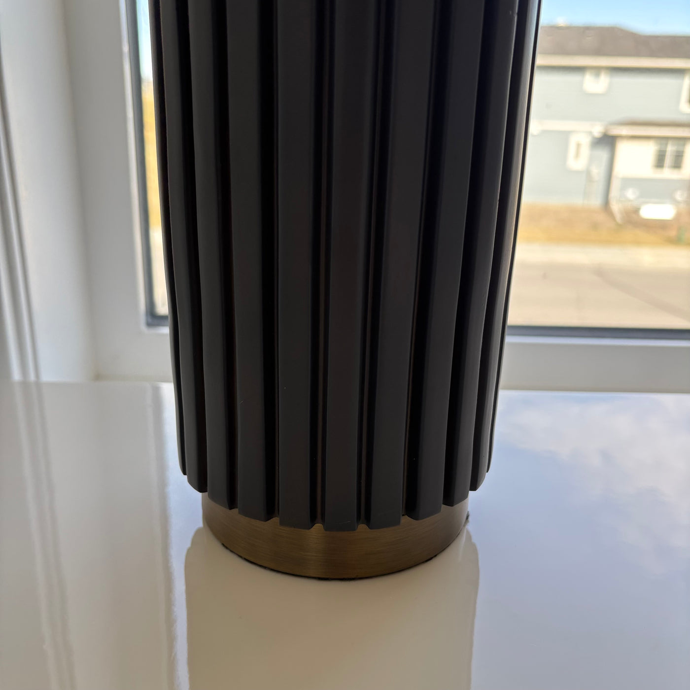 Set of 2 27" Tall Modern Table Lamps with Black Stoneware and Brass Bases - G328