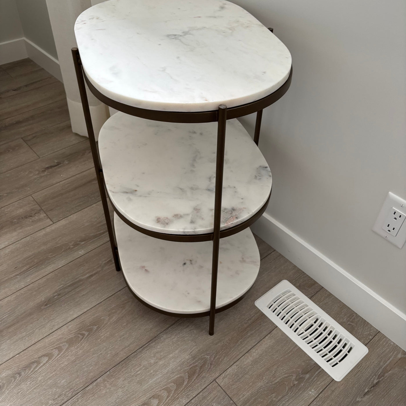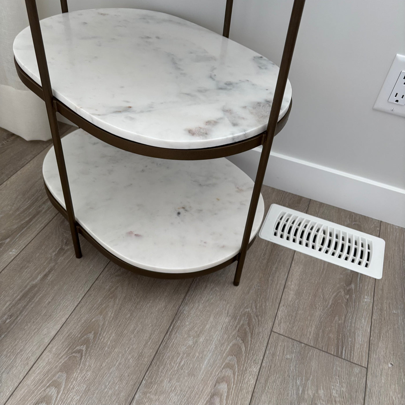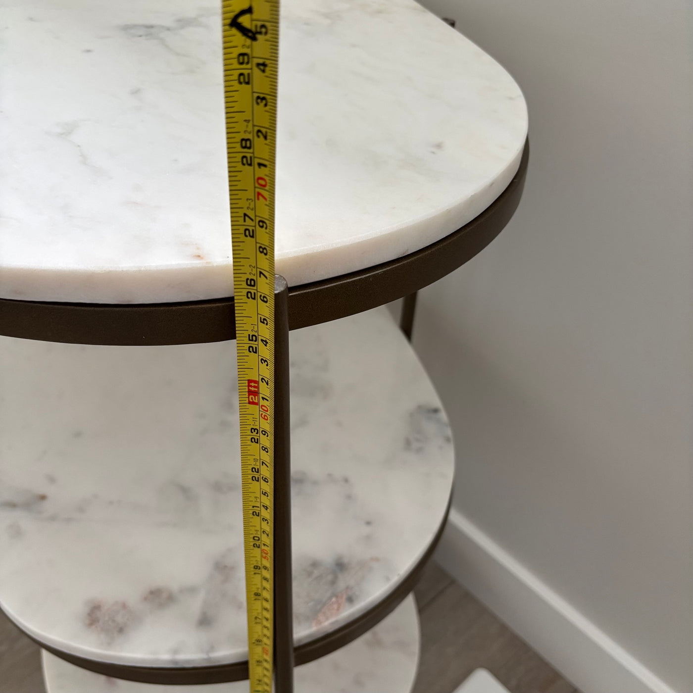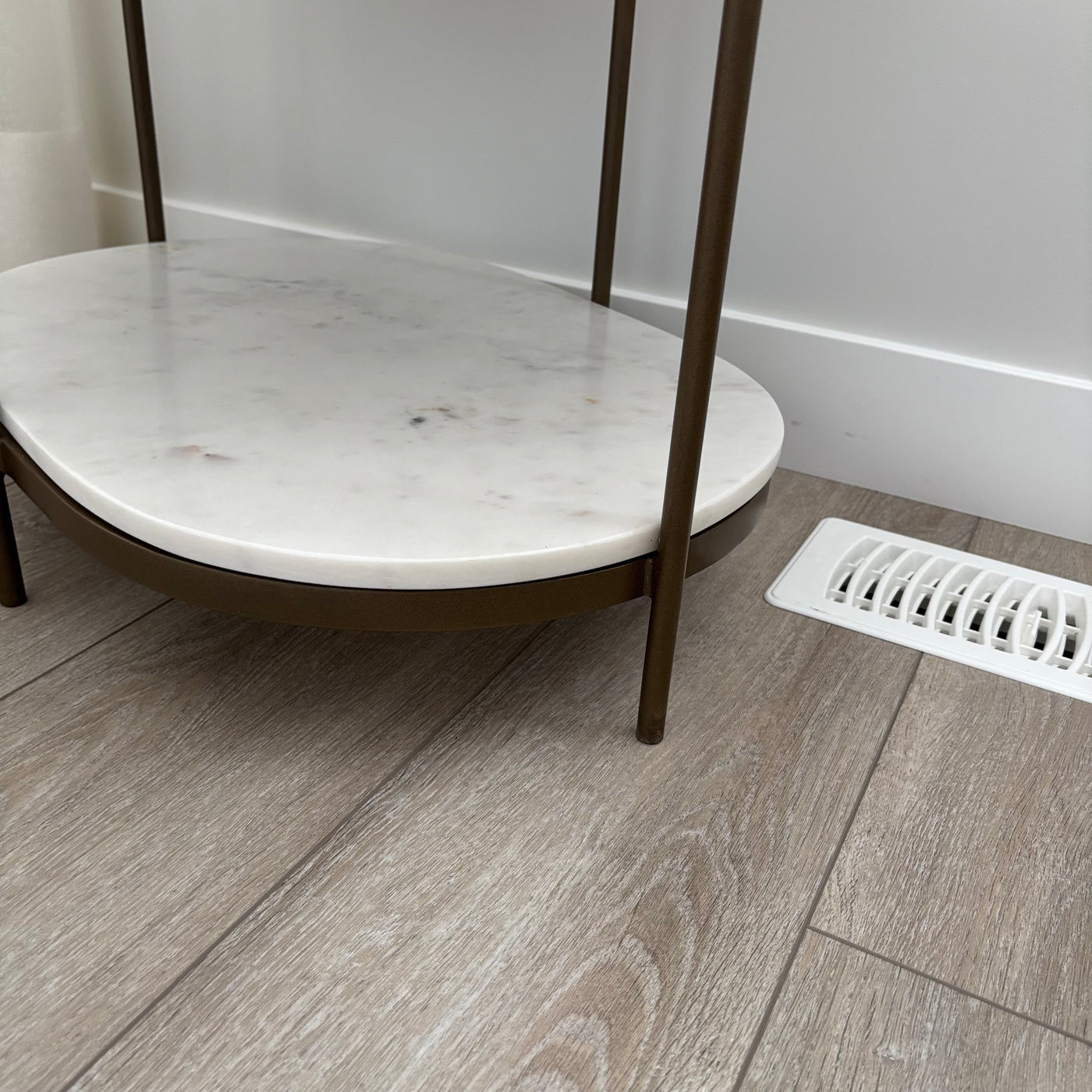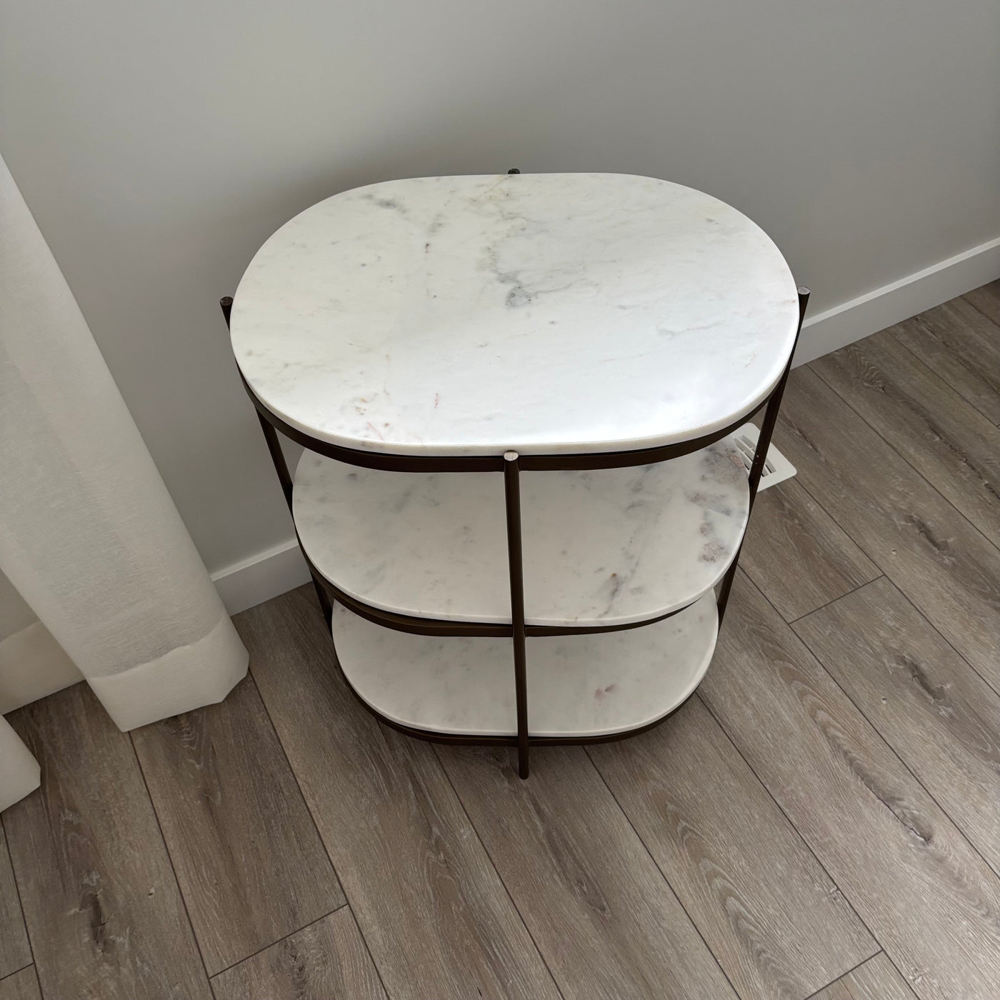 Felix Oval Nightstand with Antique Brass Frame and Polished White Marble - G340