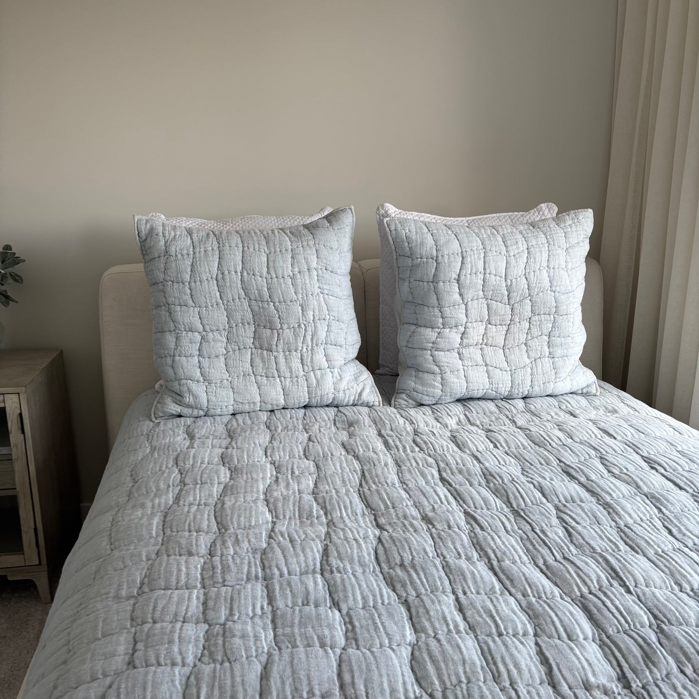 King Size Light Blue Pottery Barn Comforter, Duvet and 4 Large Pillows - G359