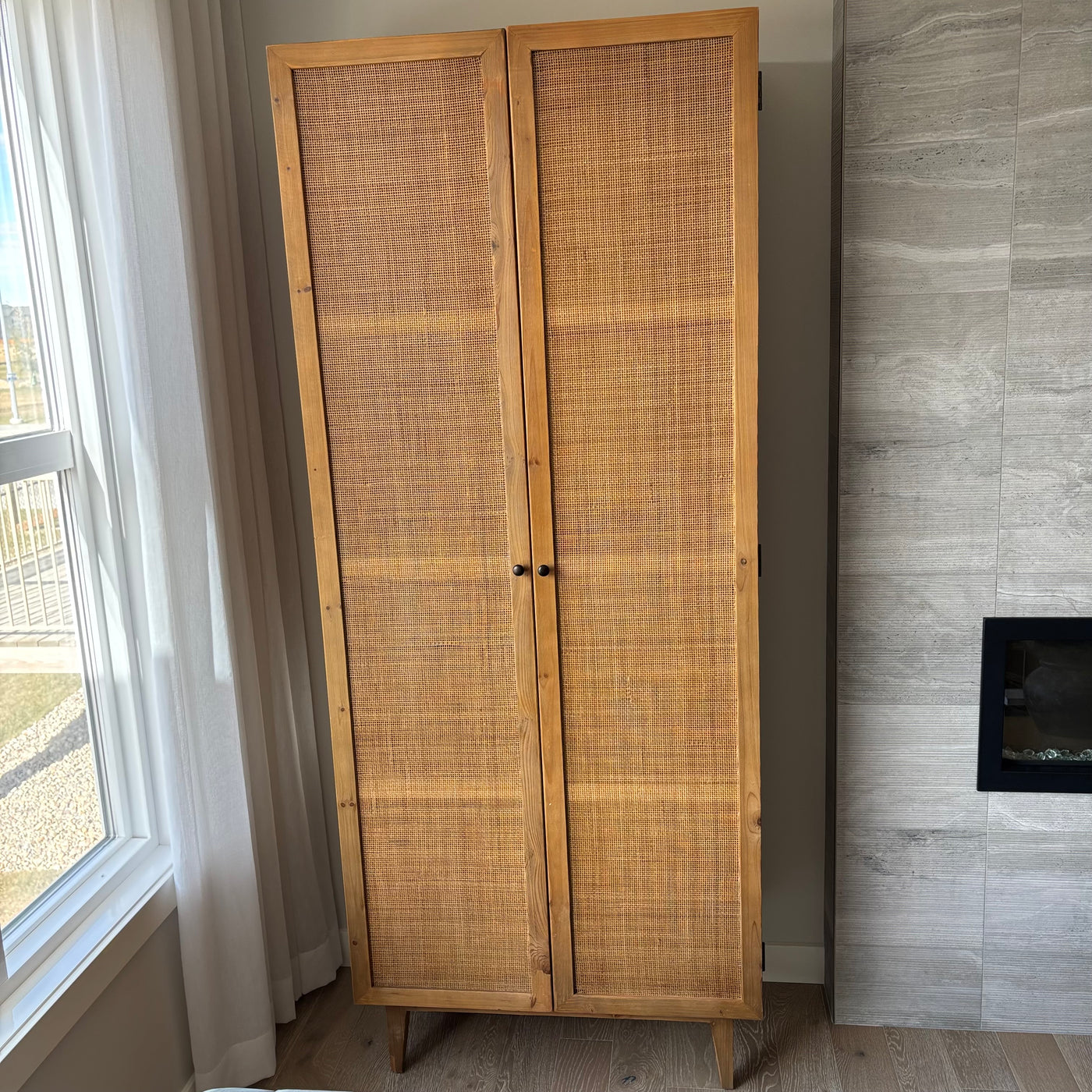 86" Tall Mondale Cabinet in Natural Honey Wood and Natural Rattan Finish - G372
