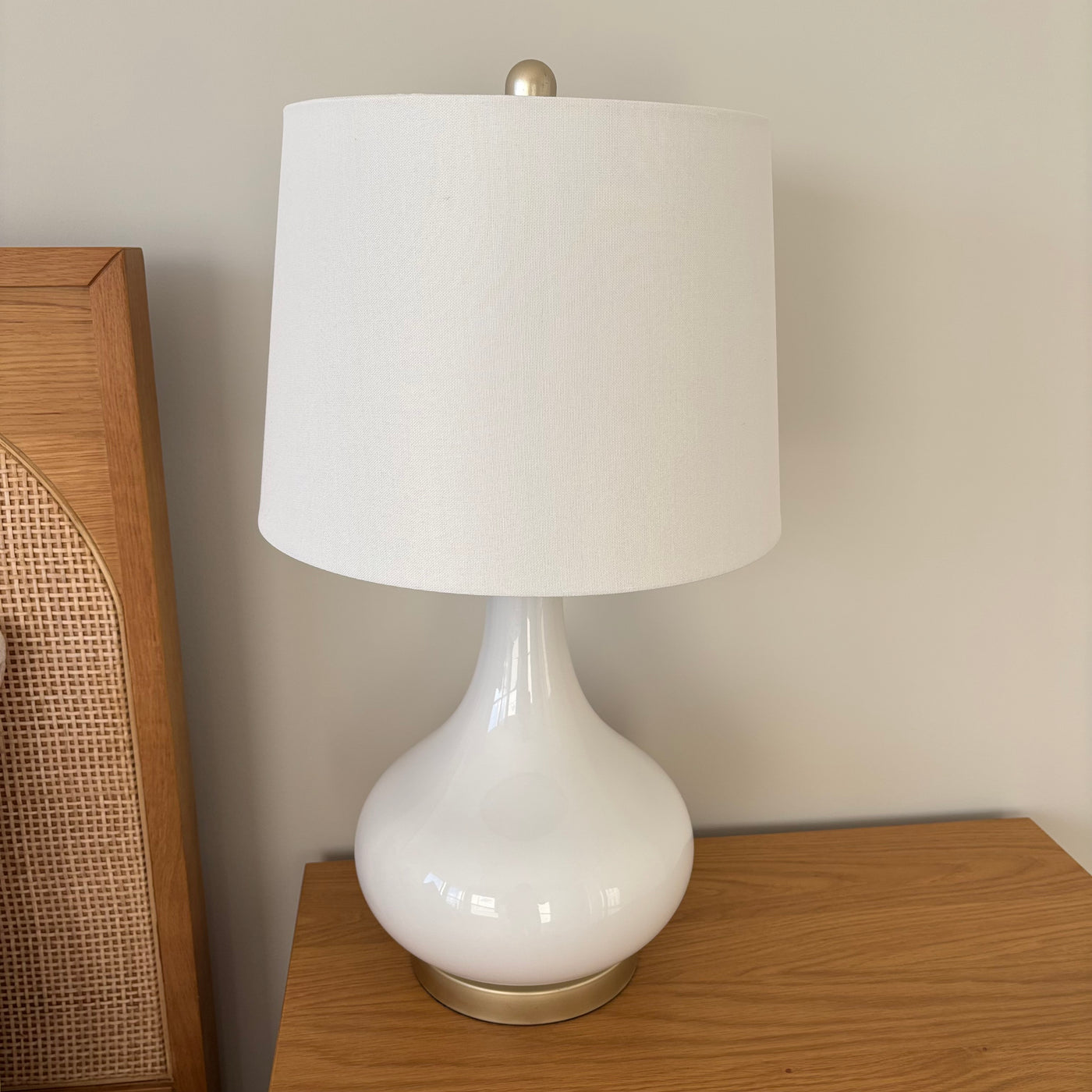 Set of 2 22” Tall Table Lamps with White Glass Bases - G377