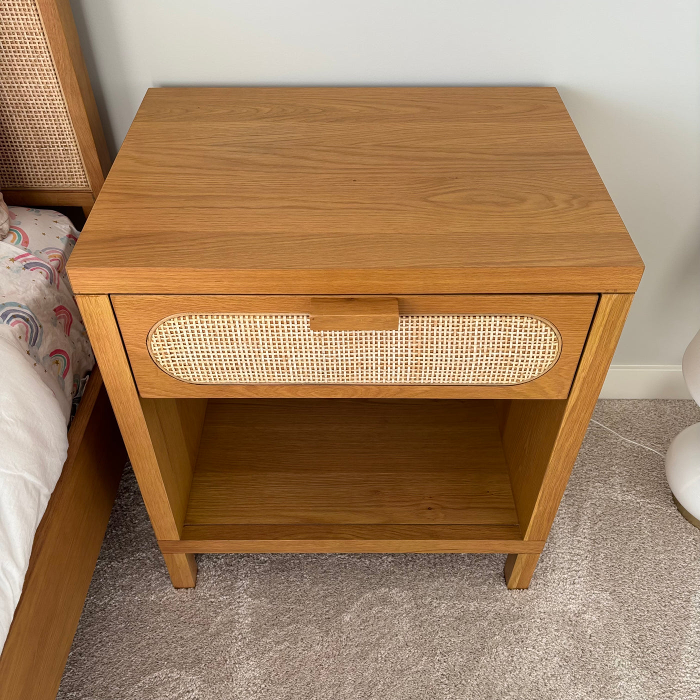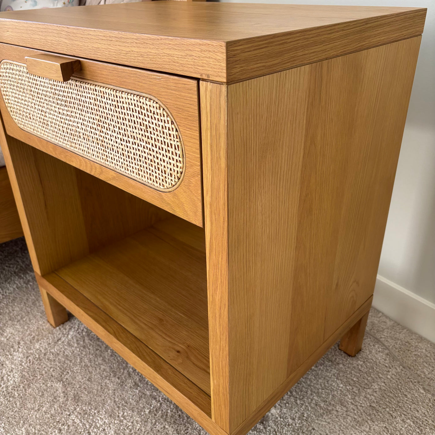 Solid Wood Allegra Nightstand with Natural Cane Drawer Front - G379