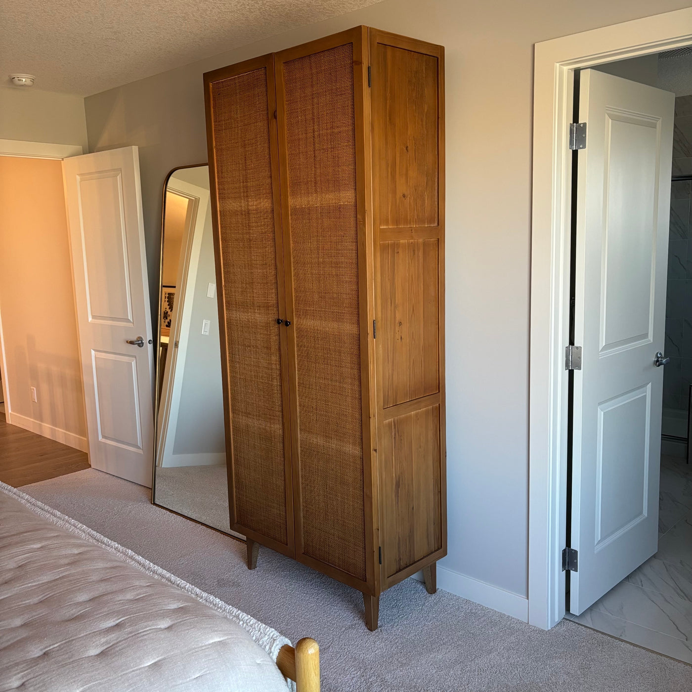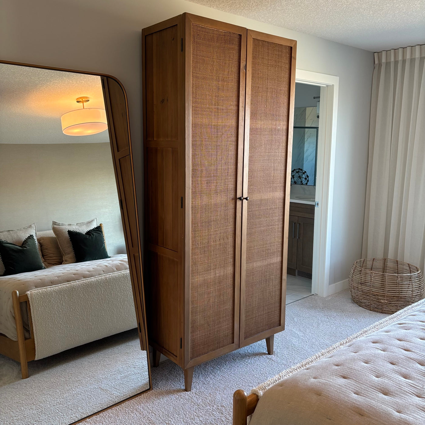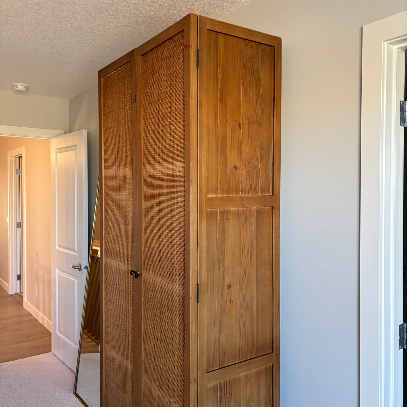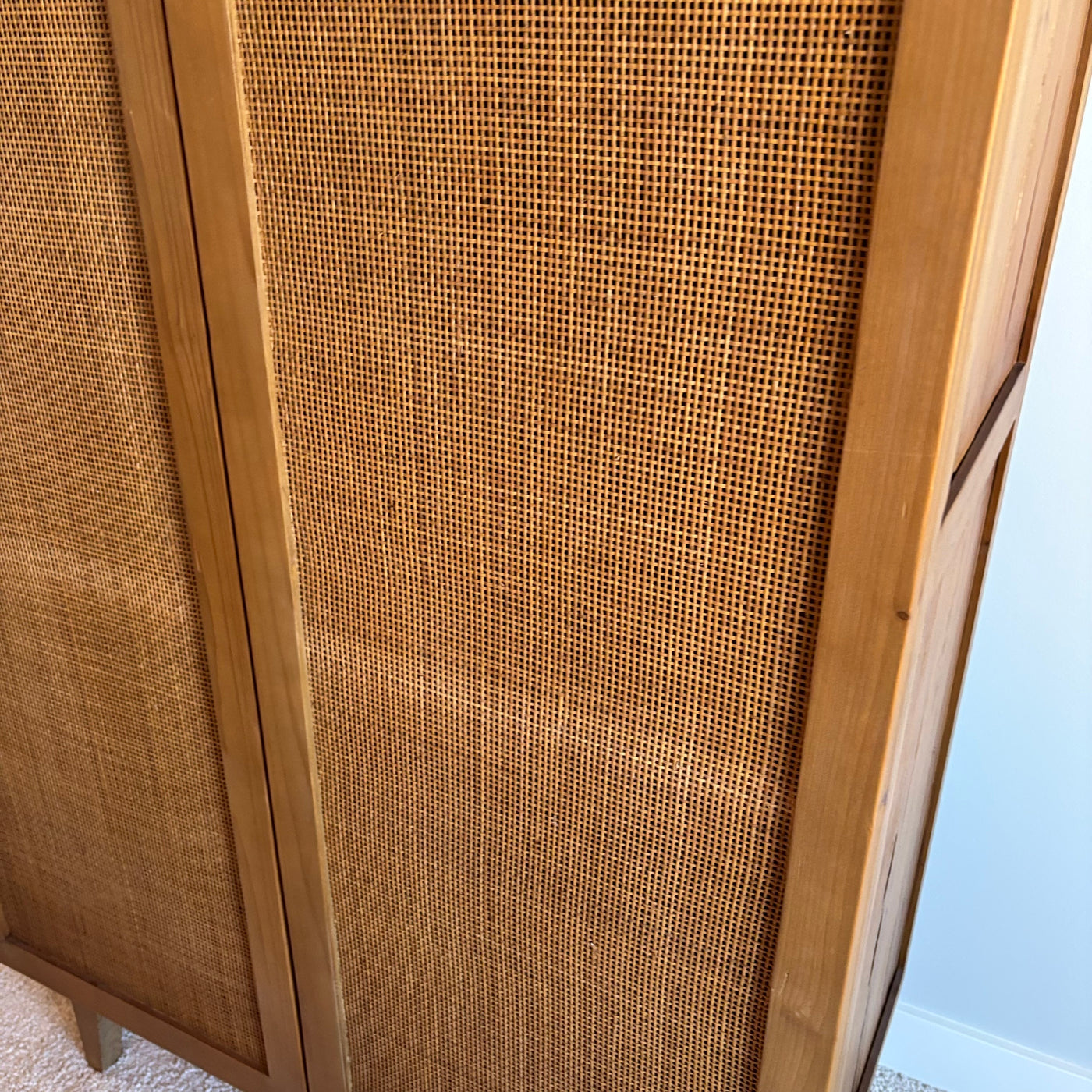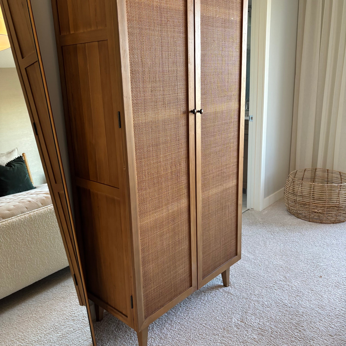 86" Tall Mondale Cabinet in Natural Honey Wood and Natural Rattan Finish - G415