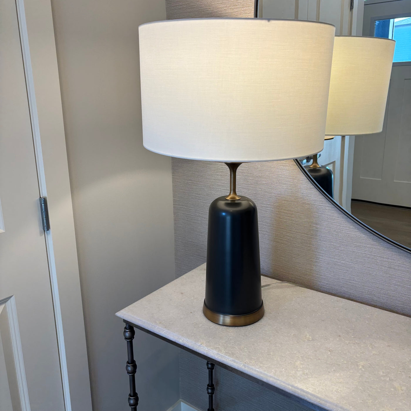 27.5” Tall Table Lamp with Black Stoneware Base and Brads Details- G417