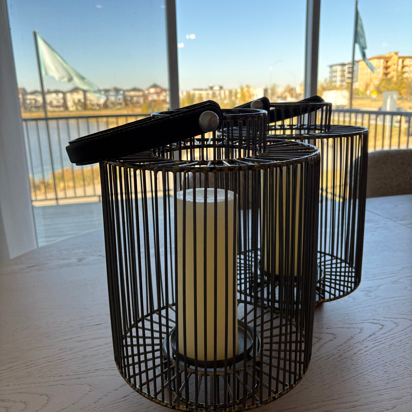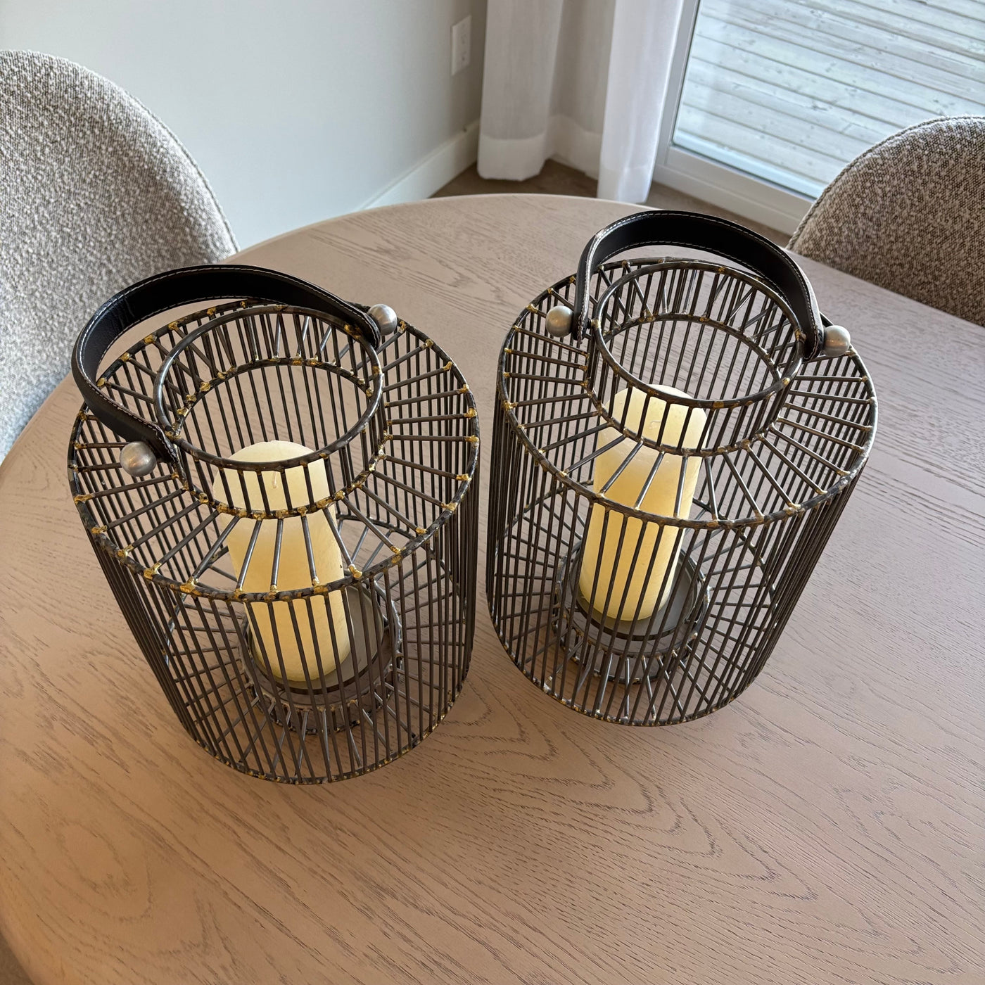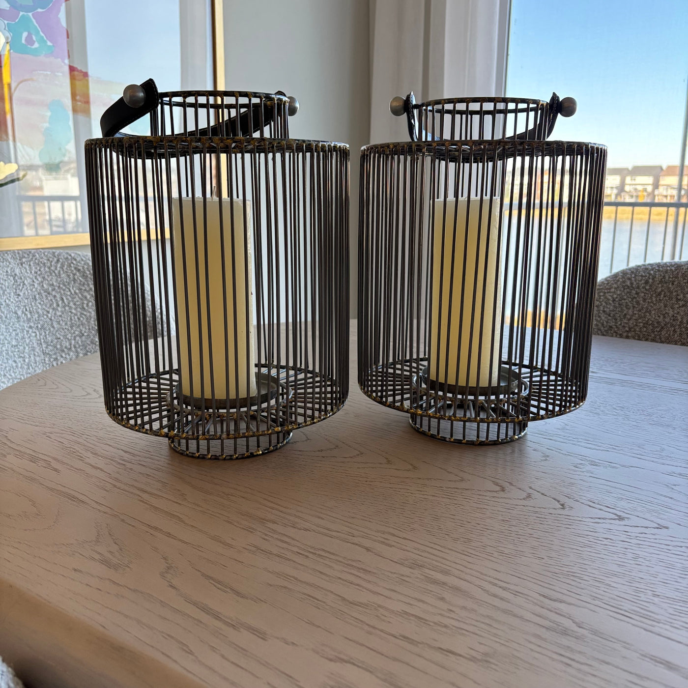 Set of 2 13.5” Tall Metal Candle Lanterns - G428