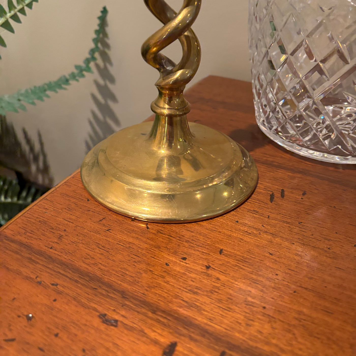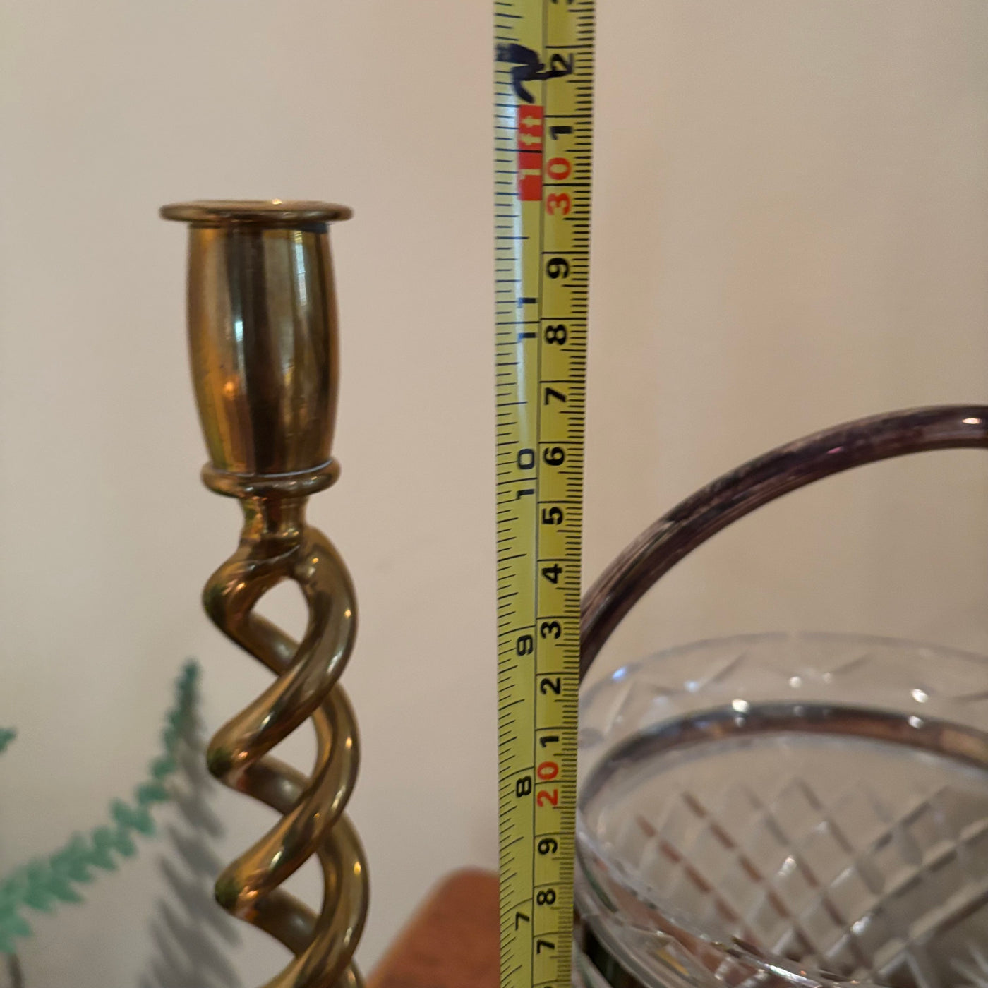 12” Tall Brass Candle Holders and Heavy Glass Bucket with Silver Plated Handle - M303