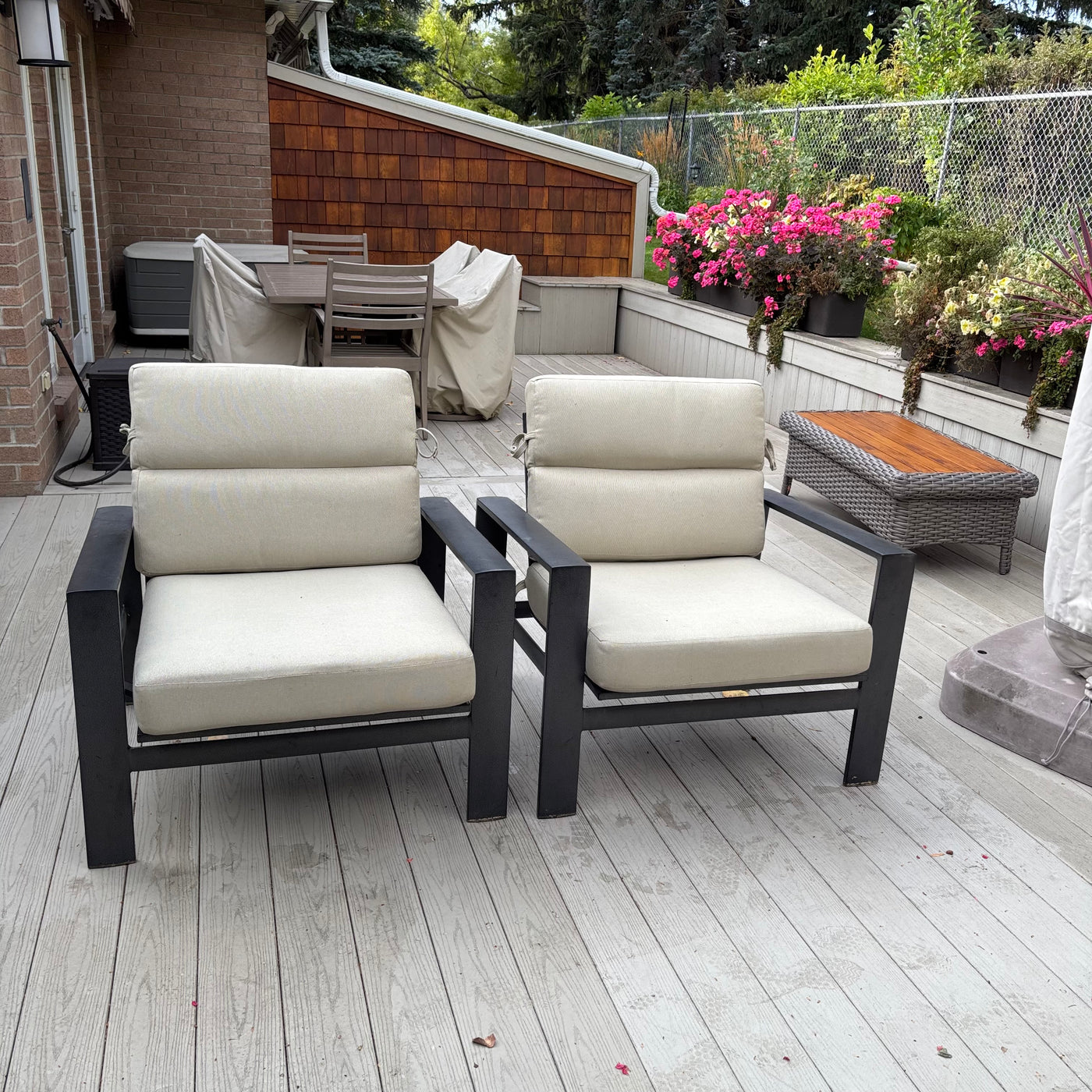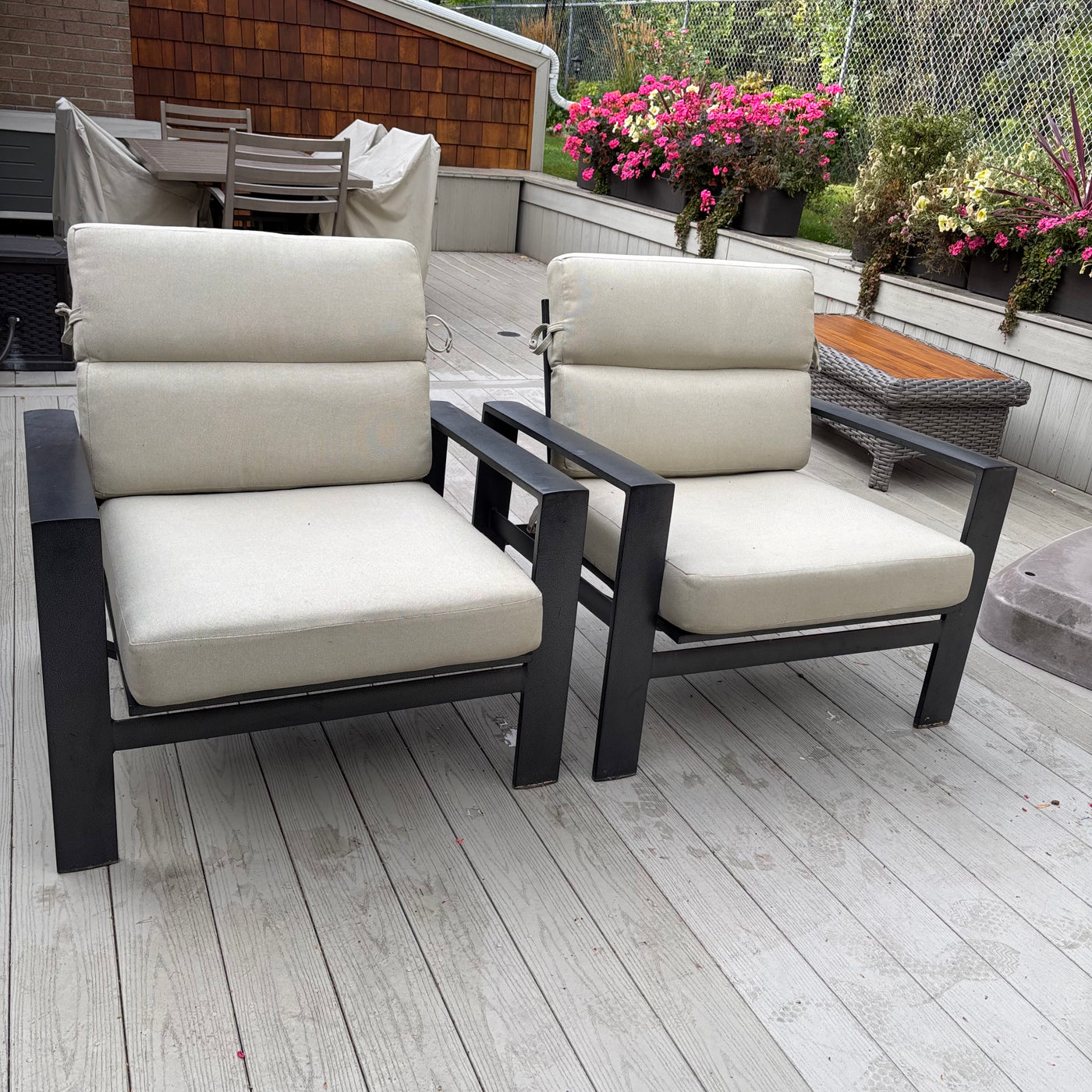 Set of 2 Brown Jordan Parkway Cushion Lounge Chairs with Covers (some dents on frames) - M308