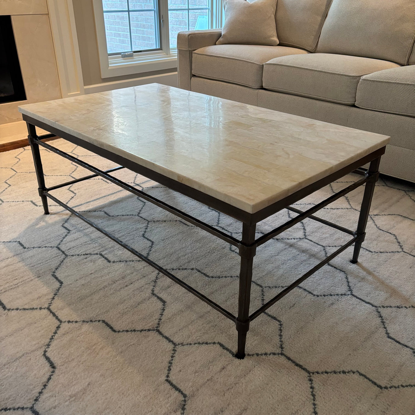 Modern Coffee Table with Wrought Iron Frame and Heavy Marble Top - M311