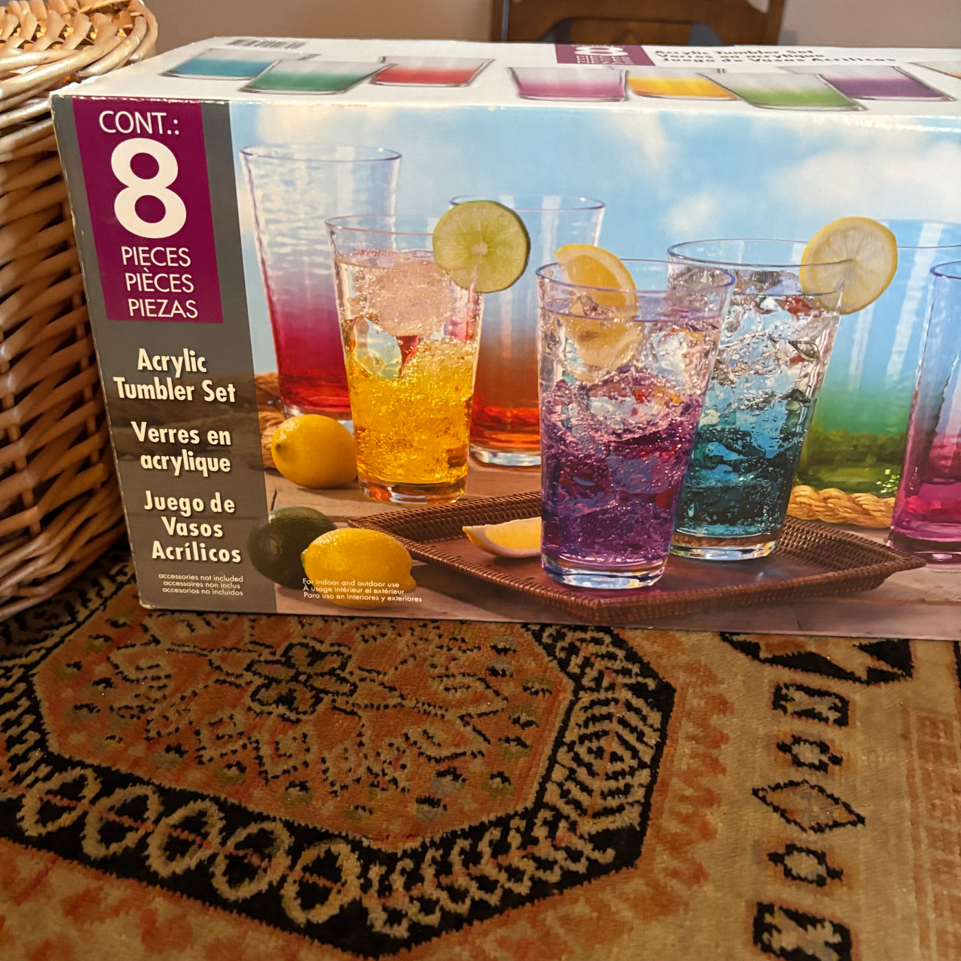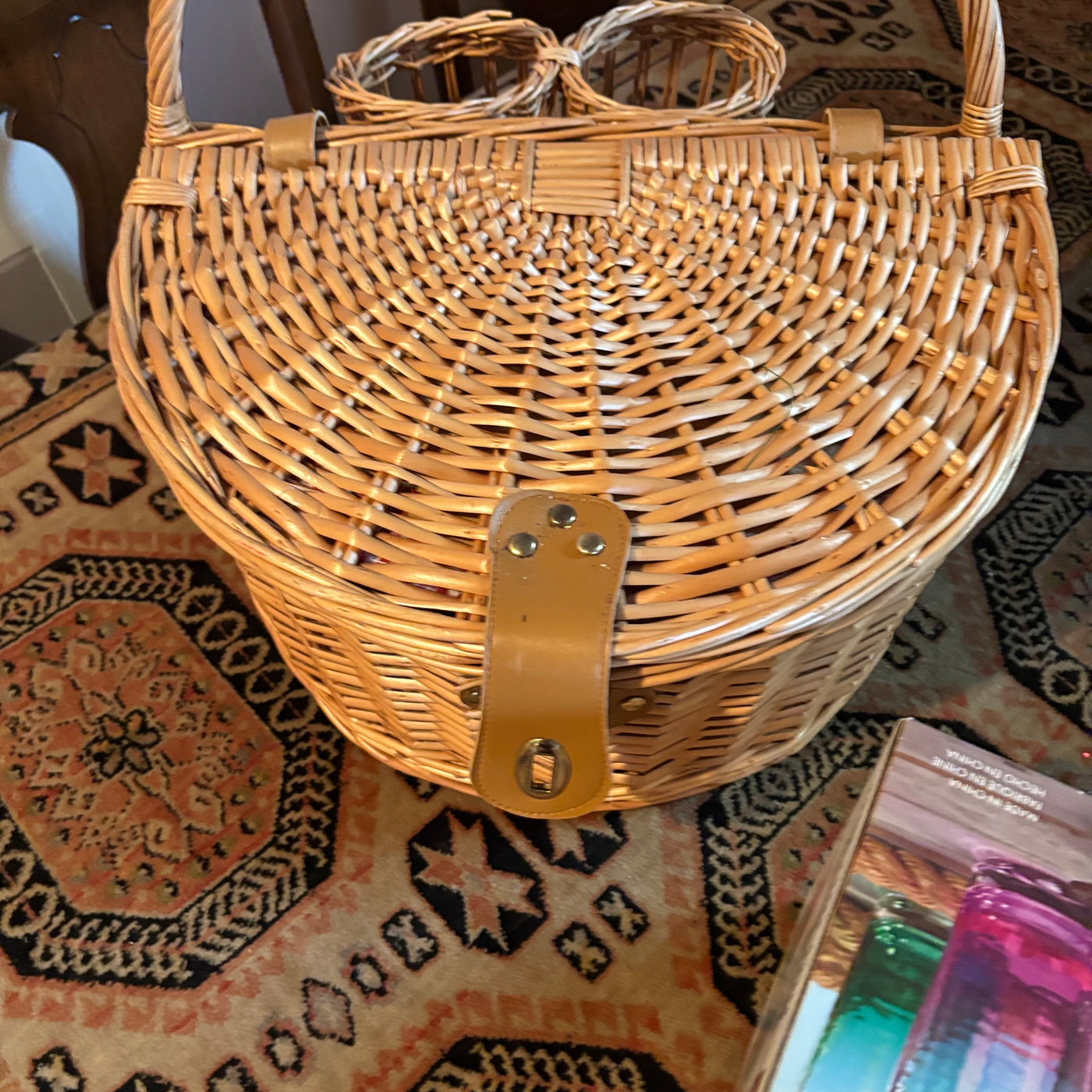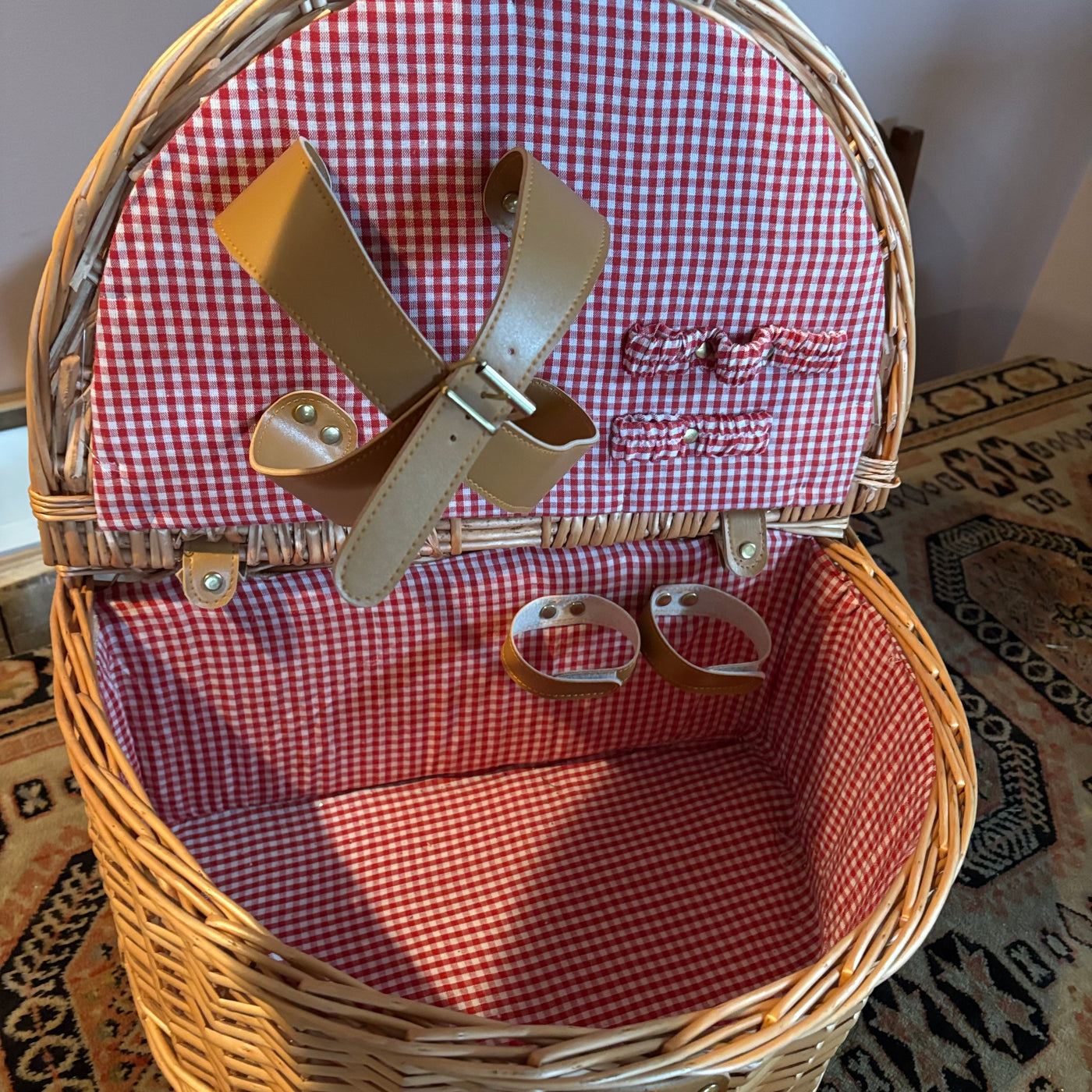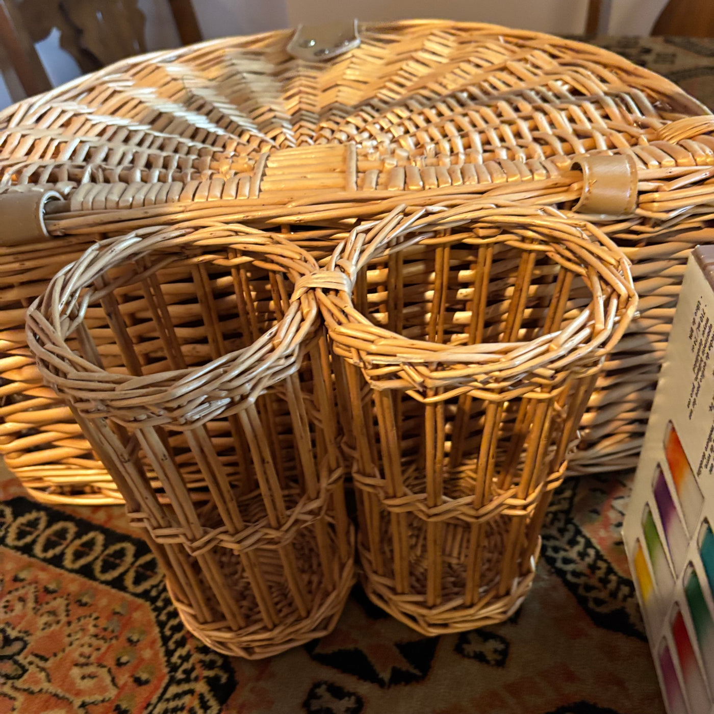 1/2 Circle Picnic Basket and Plastic Tumblers - O268