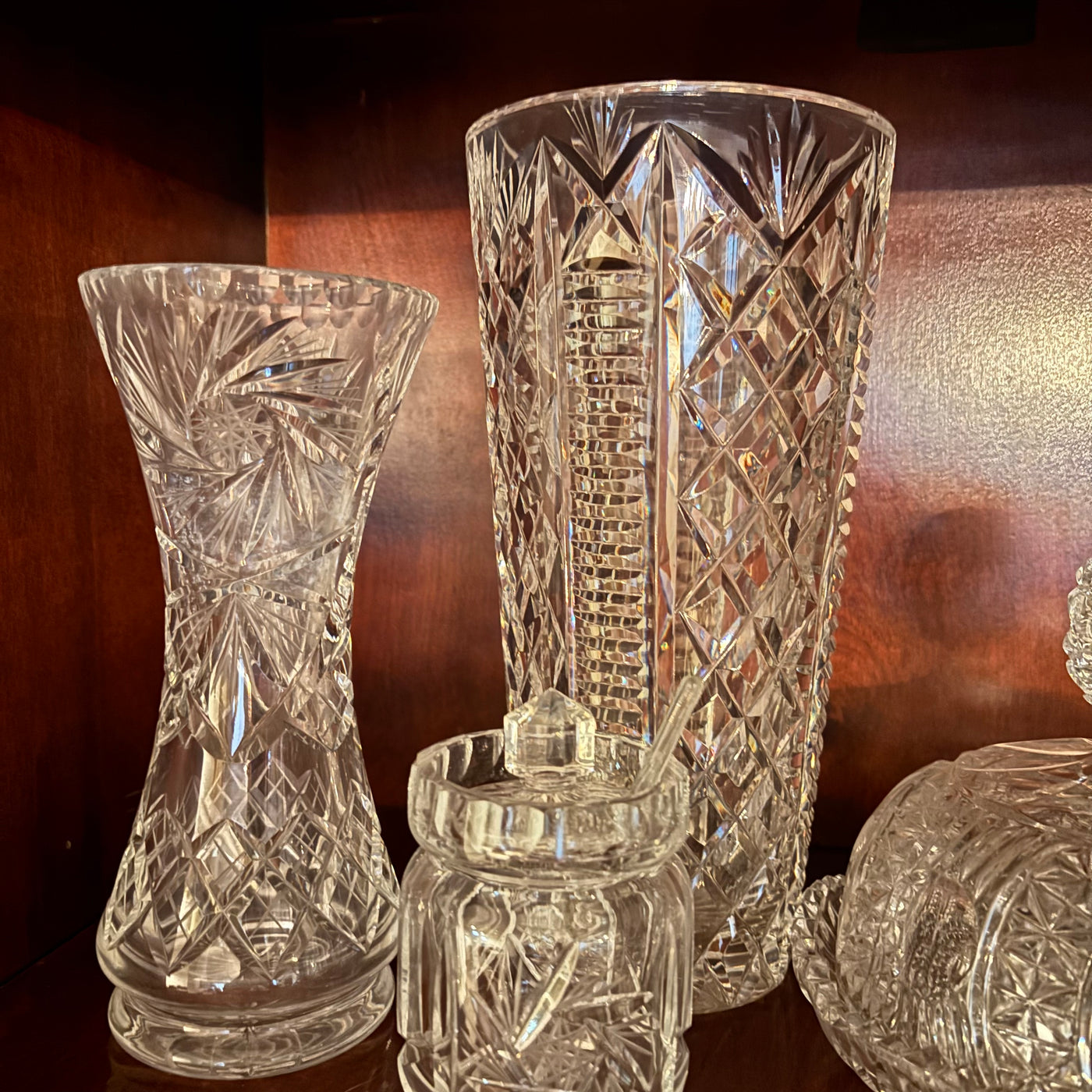CRYSTAL AND CUT GLASS GROUPING - P112