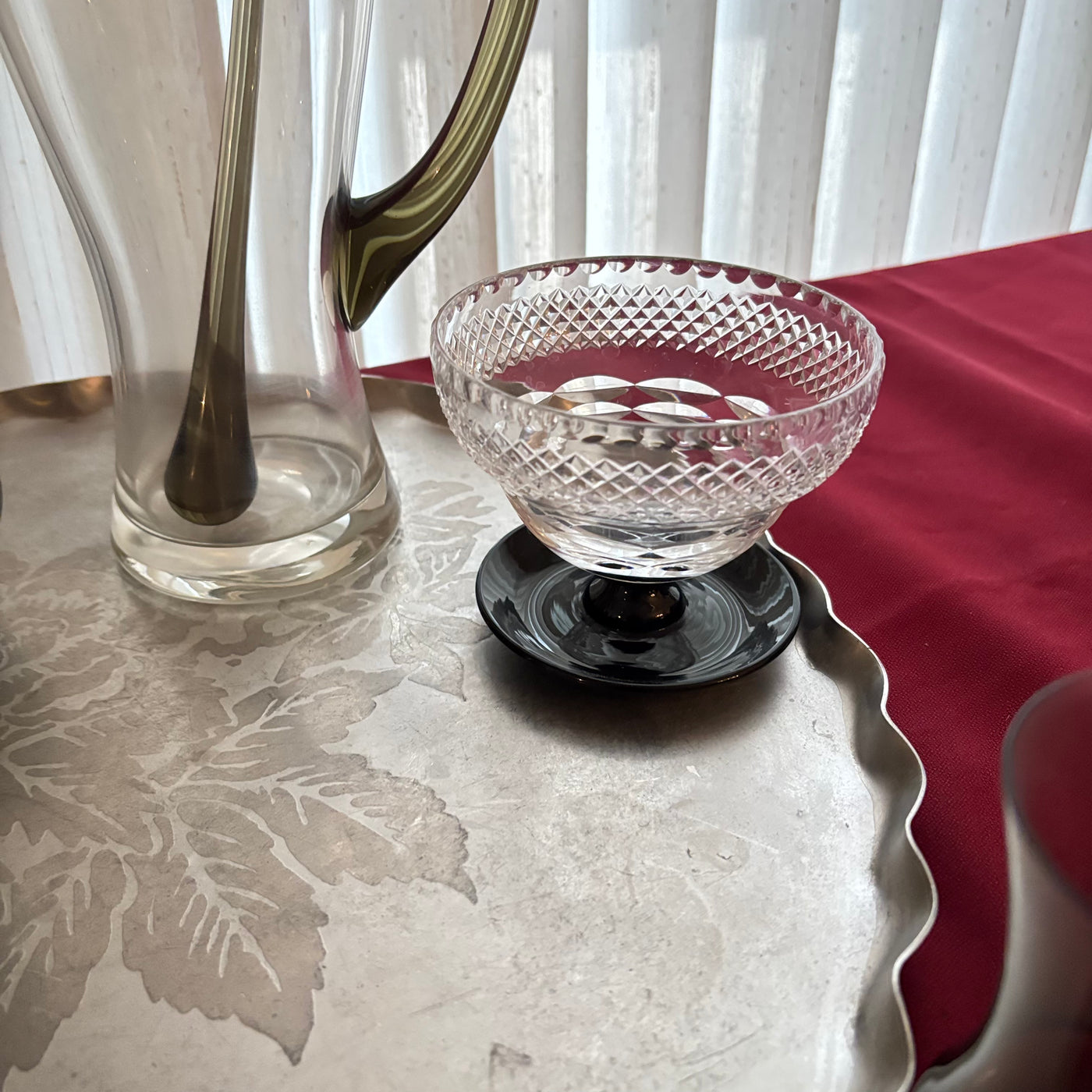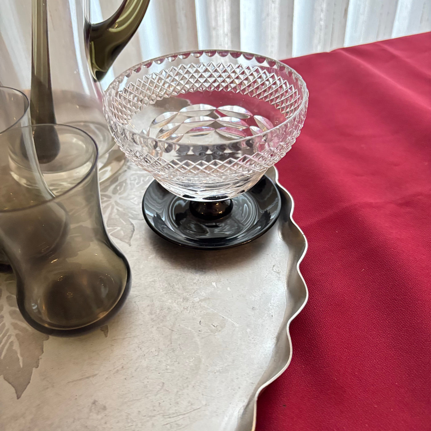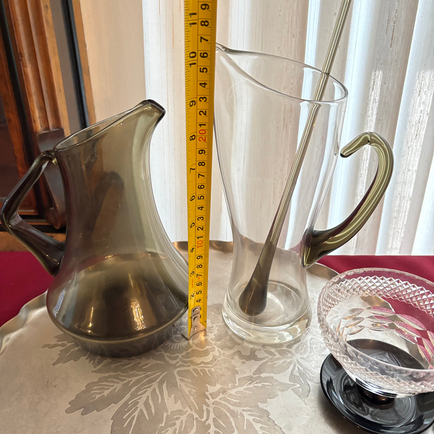 VINTAGE BARWARE GROUPING (SMOKED GLASS PITCHER SET AND MORE) - P113