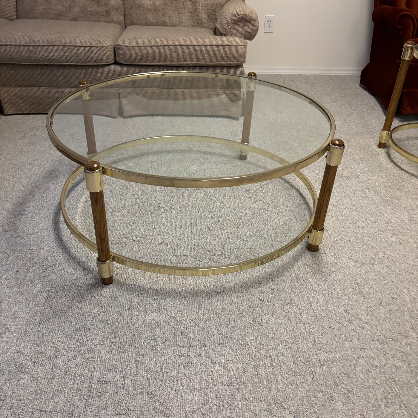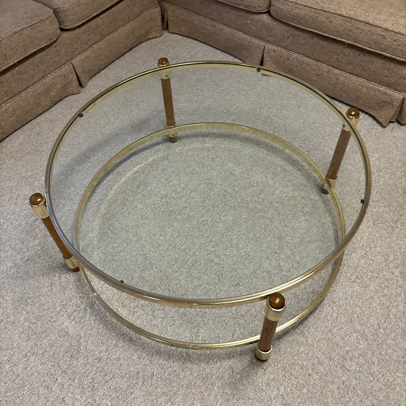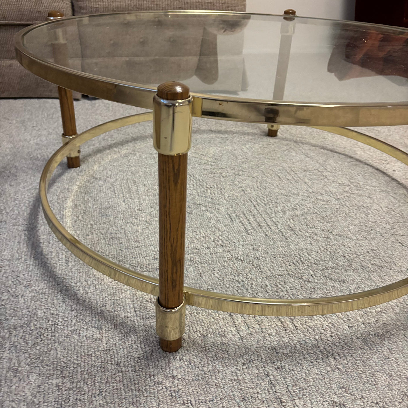 Vintage Coffee Table with Brass and Wood Frame - S550
