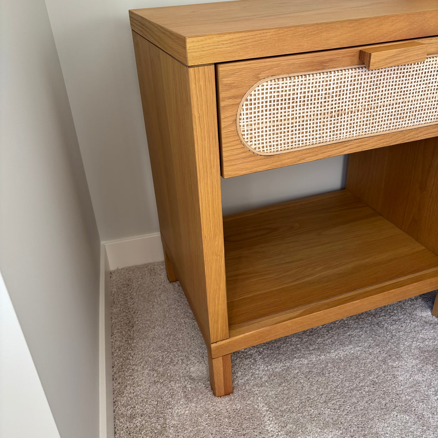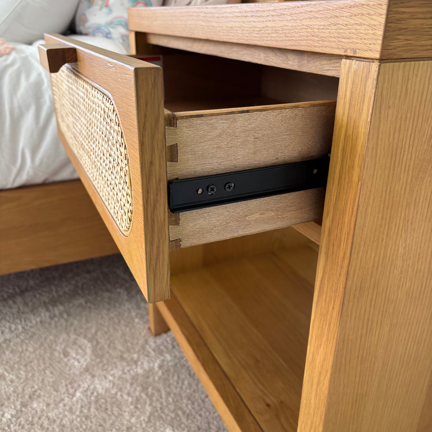 Solid Wood Allegra Nightstand with Natural Cane Drawer Front - G380