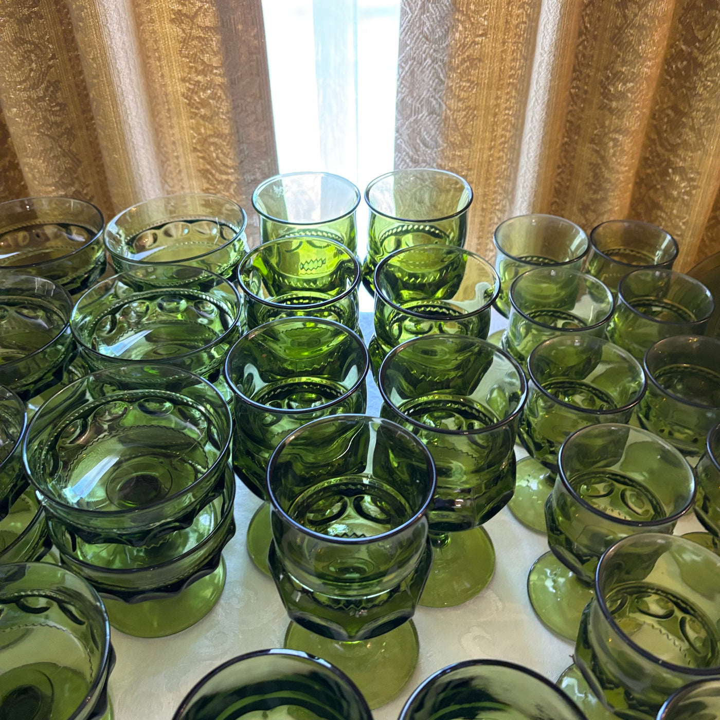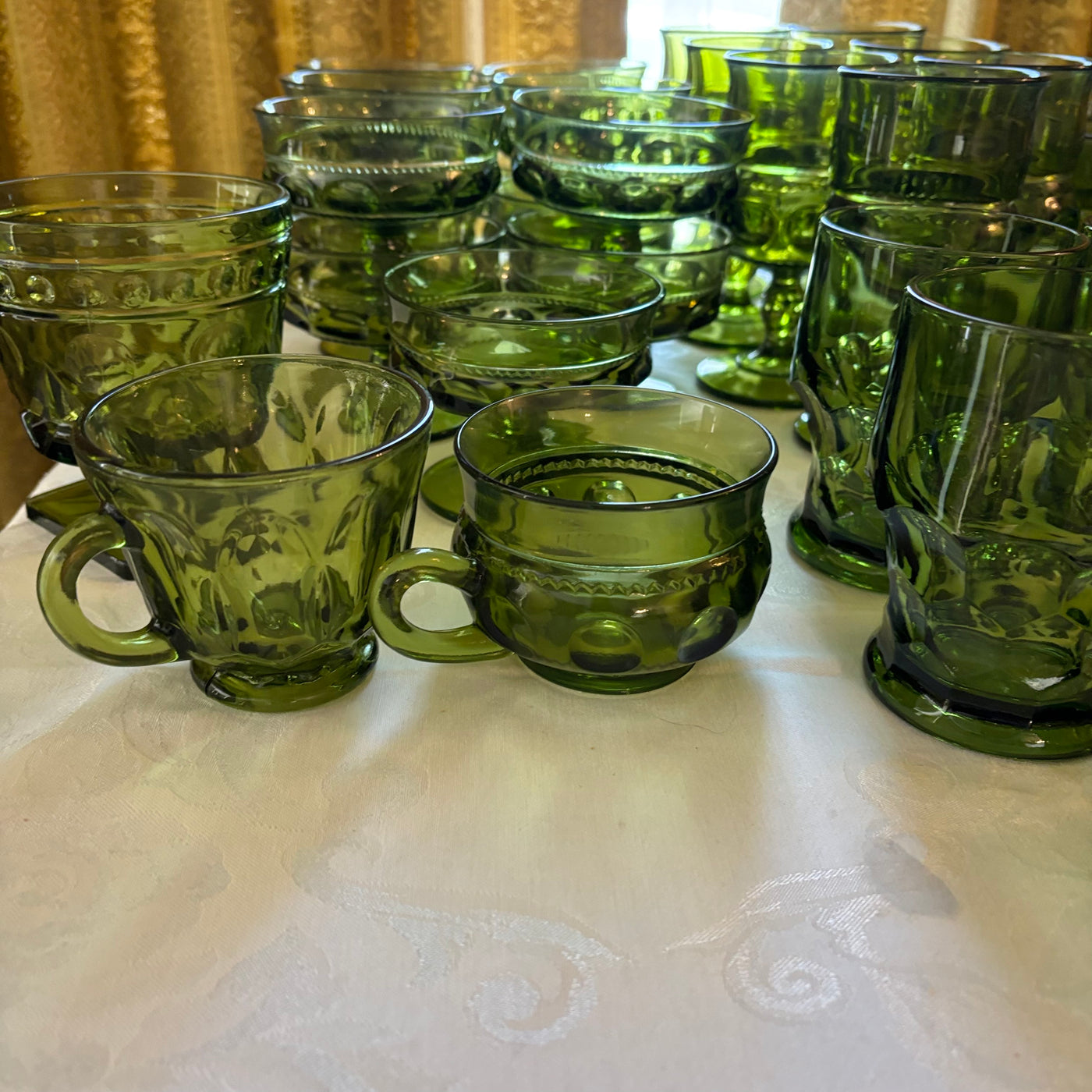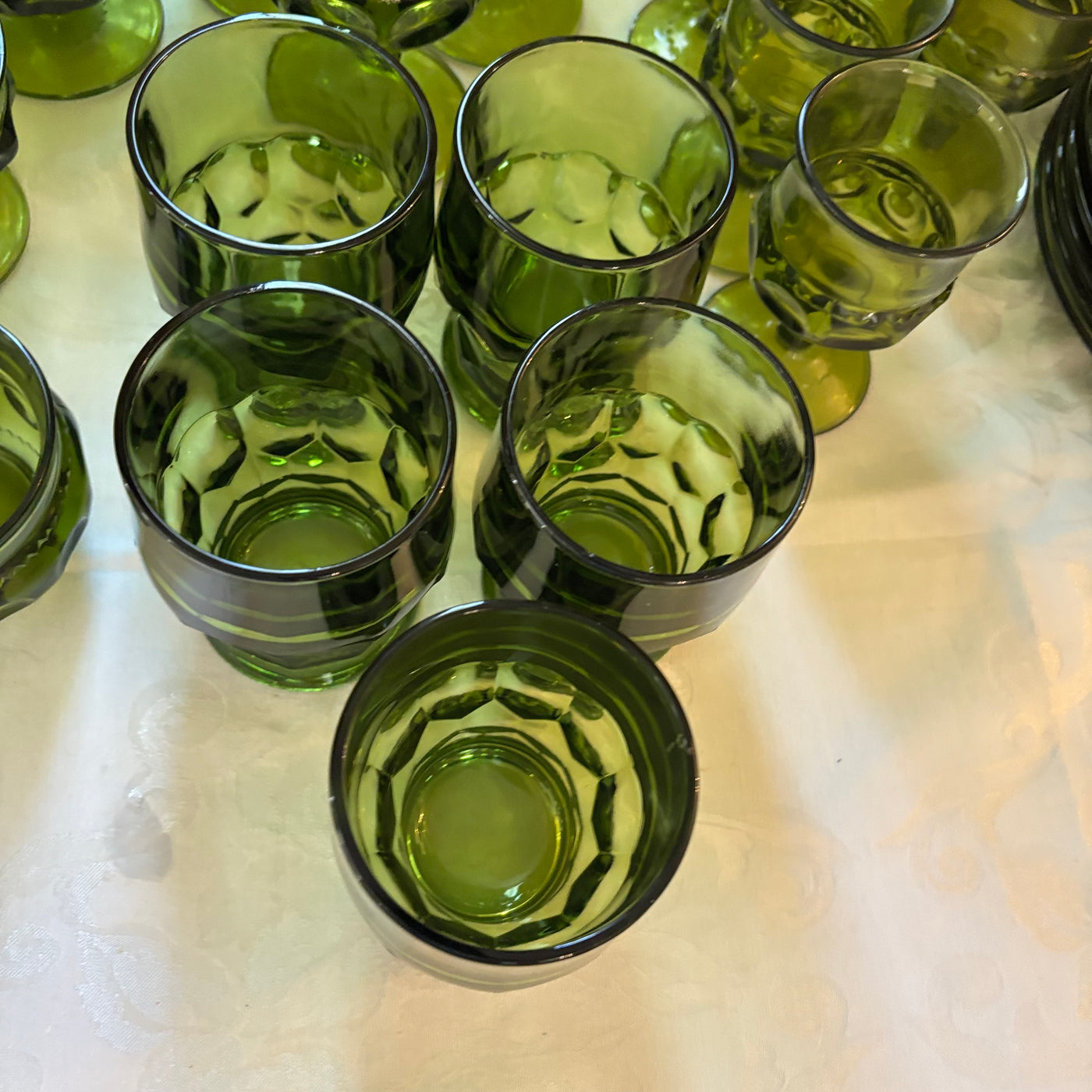 55 Piece Vintage Green "Georgian Honeycomb" Glass Grouping - R517