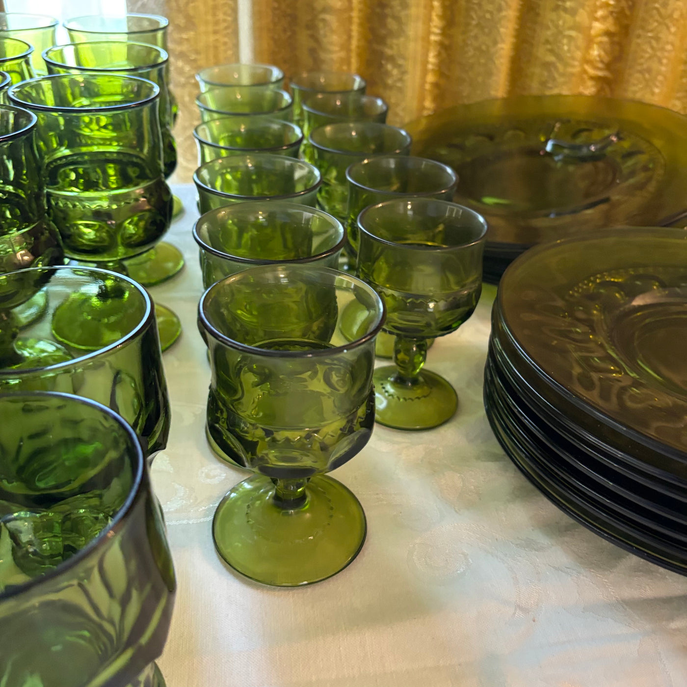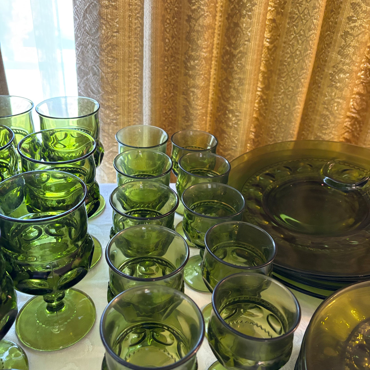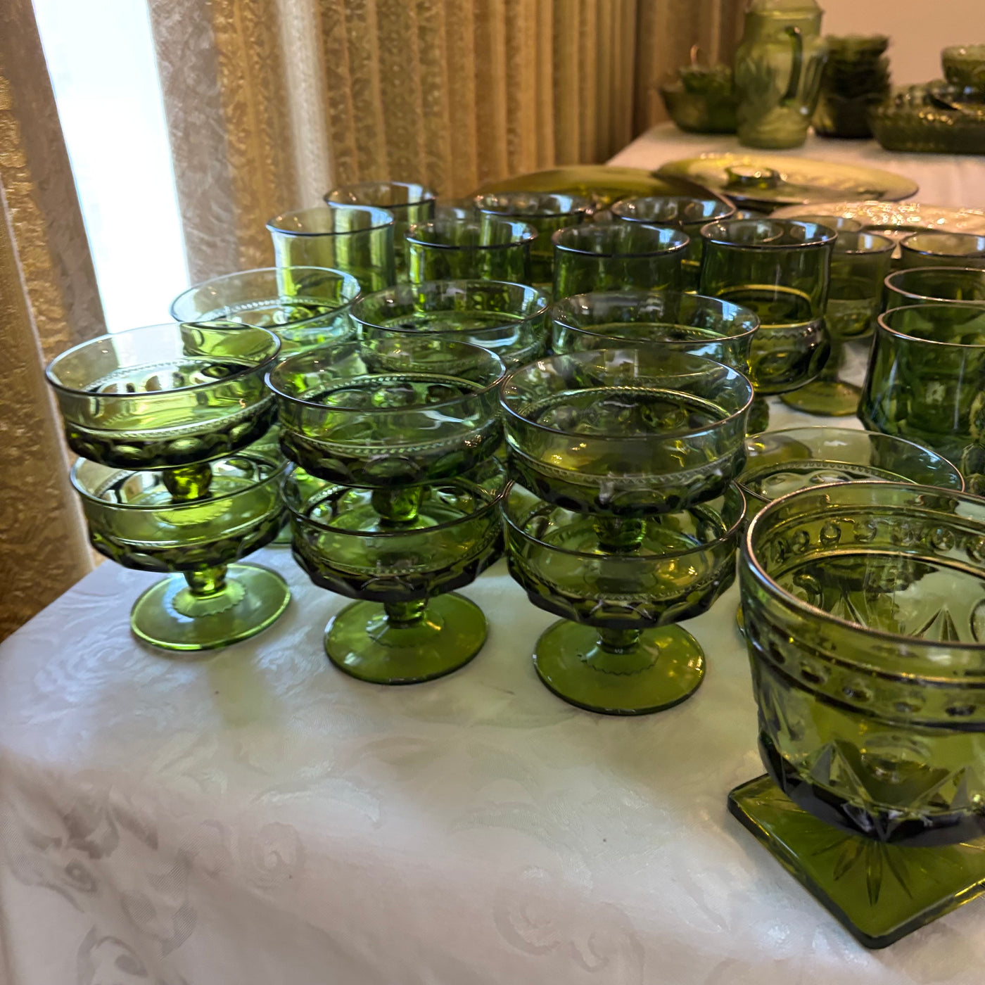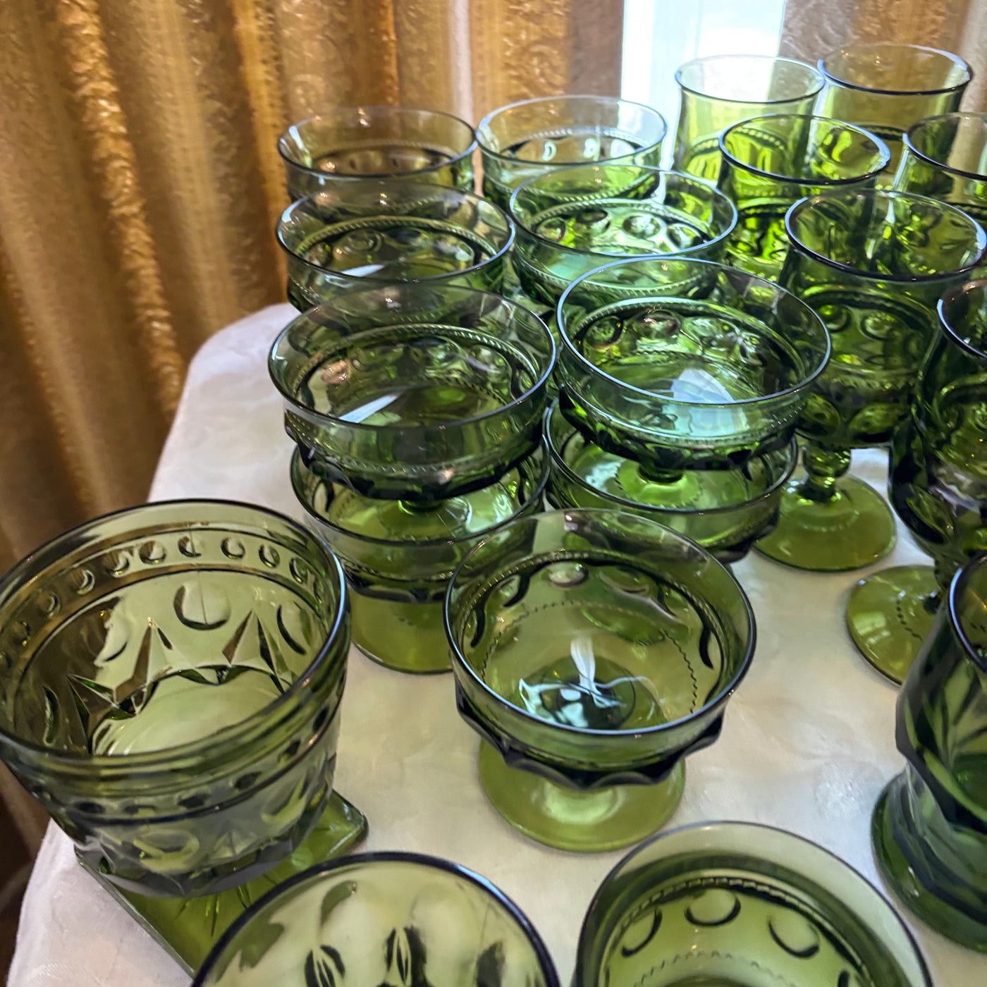 55 Piece Vintage Green "Georgian Honeycomb" Glass Grouping - R517